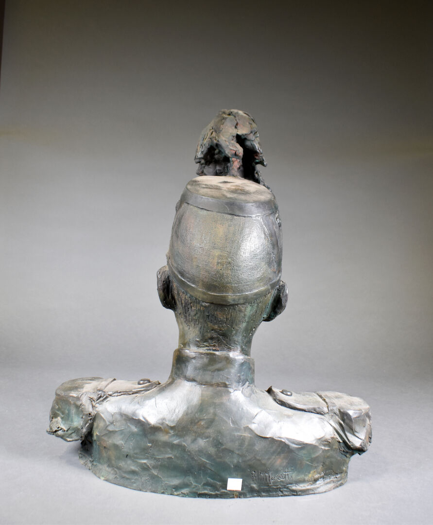 D’après A. MORETTI (XXe siècle). Buste de St-Cyrien en résine laquée noir nuancé vert en résine. Signée au dos. Haut. : 56 cm.