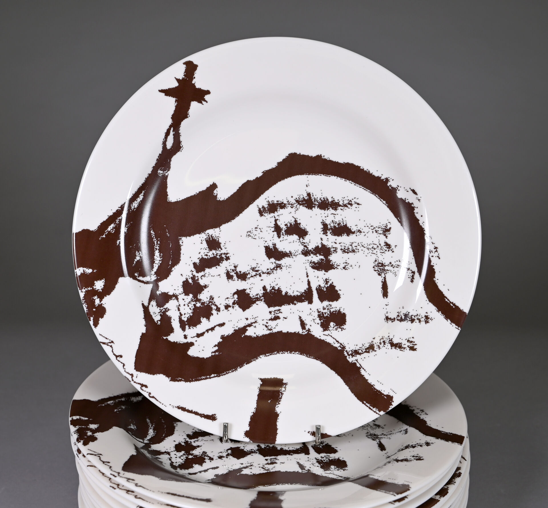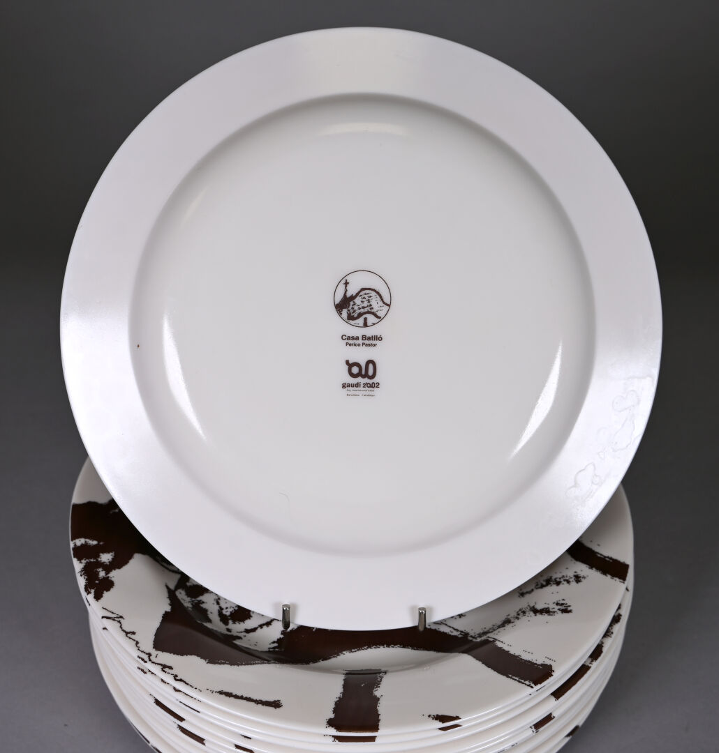 D’après Antonio GAUDI. Suite de 13 assiettes en opaline ? A décor de la Casa Batllo. Marquées au dos. Diam. : 27 cm.