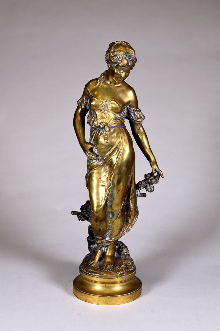 D’après Auguste MOREAU (1934-1917). Bronze à patine or représentant une allégorie du printemps. Signé à la base. Haut. : 52 cm.