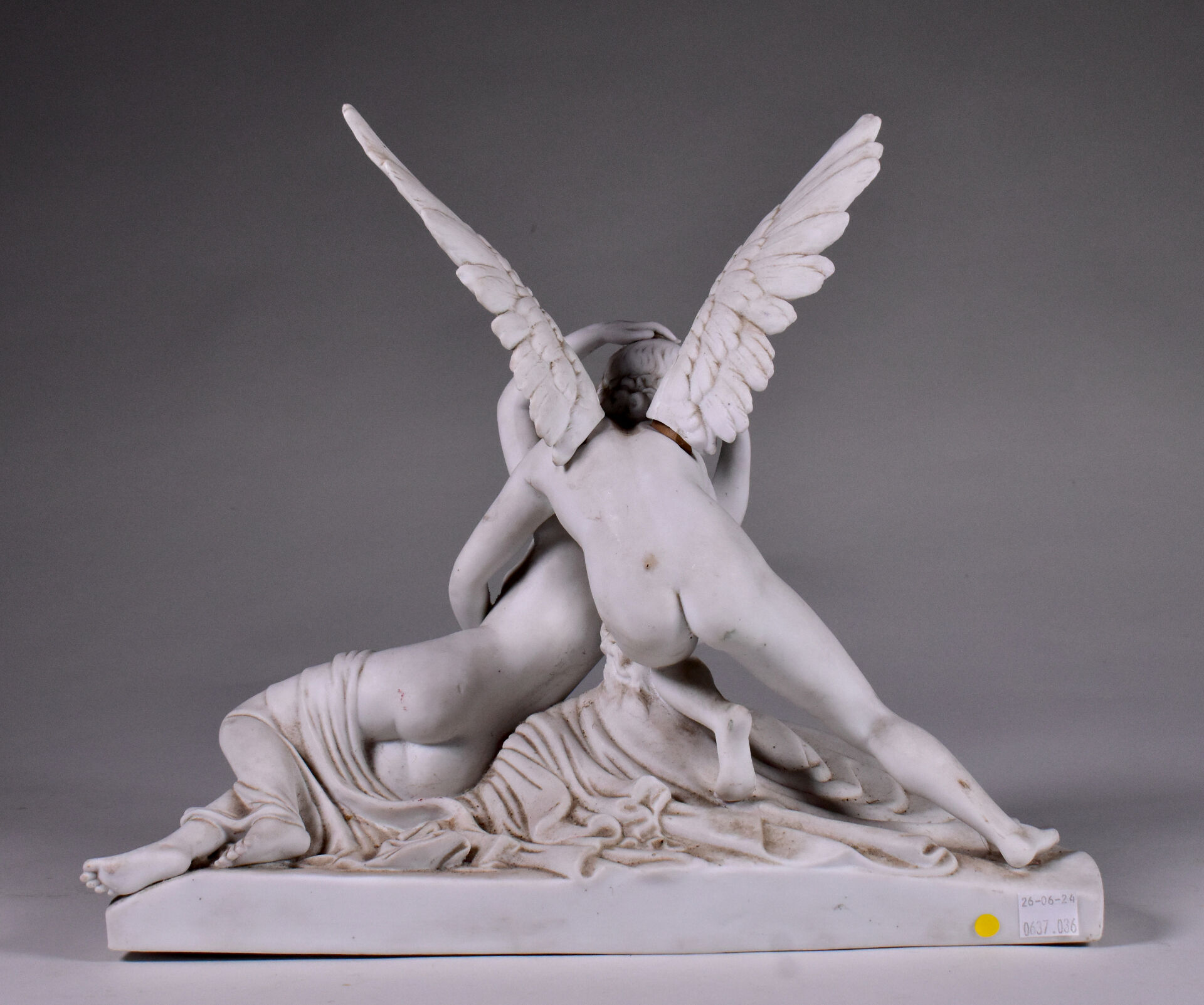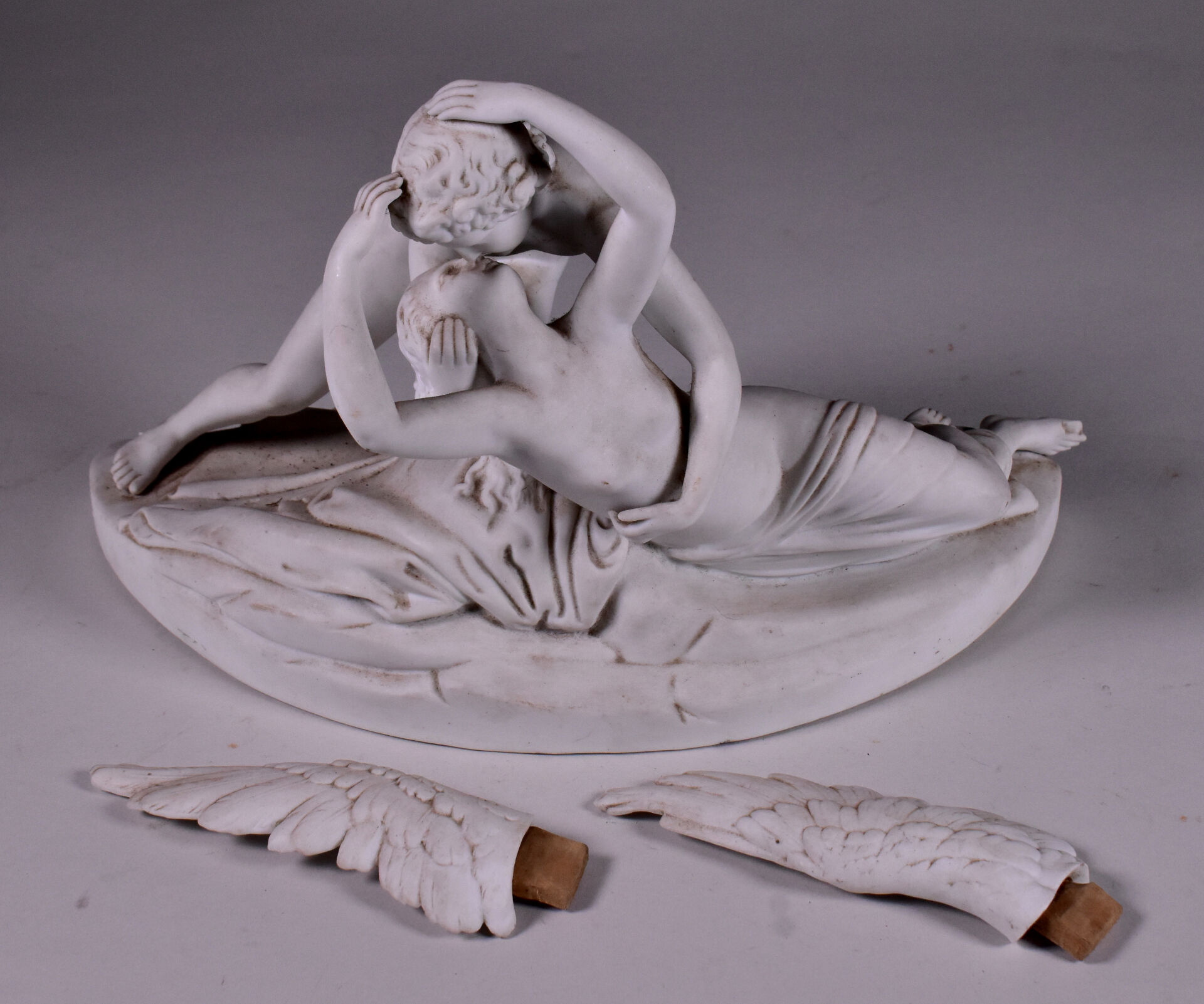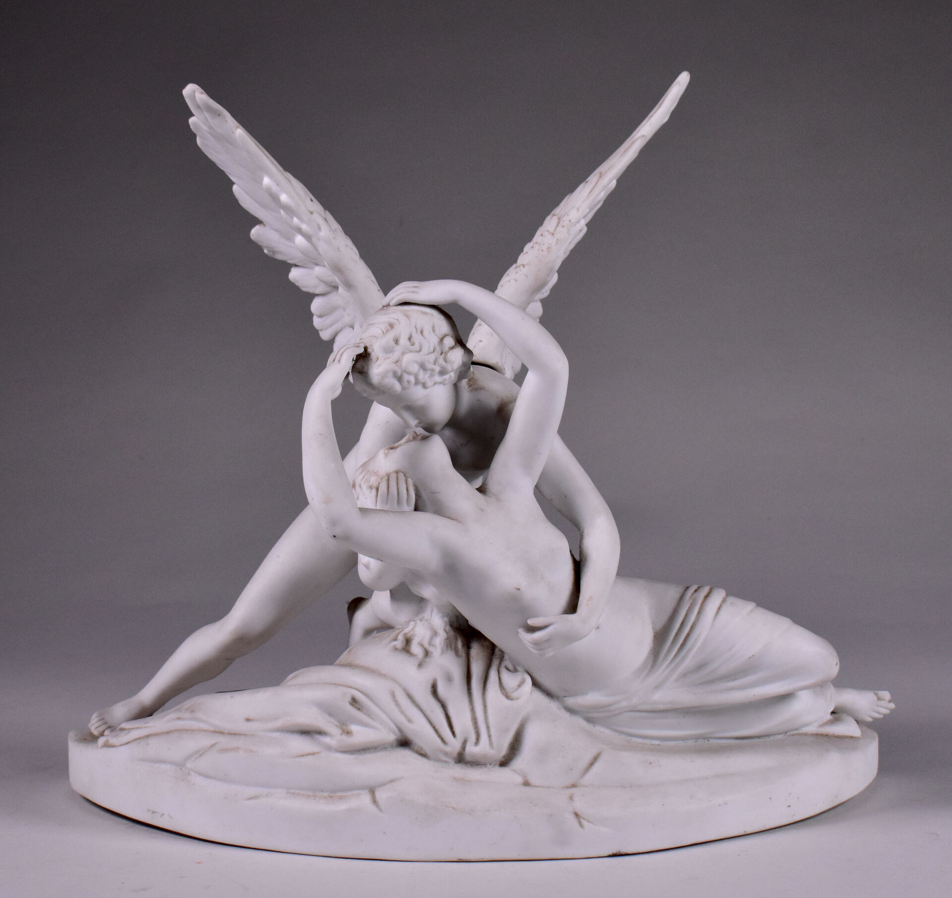 D’après CANOVA. Le Psyché ranimée par le baiser de l’amour. Sujet en biscuit (petits éclats). Haut. : 30 cm.