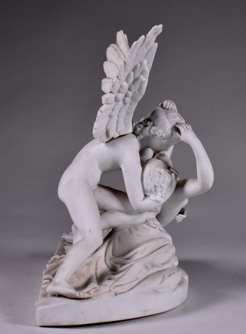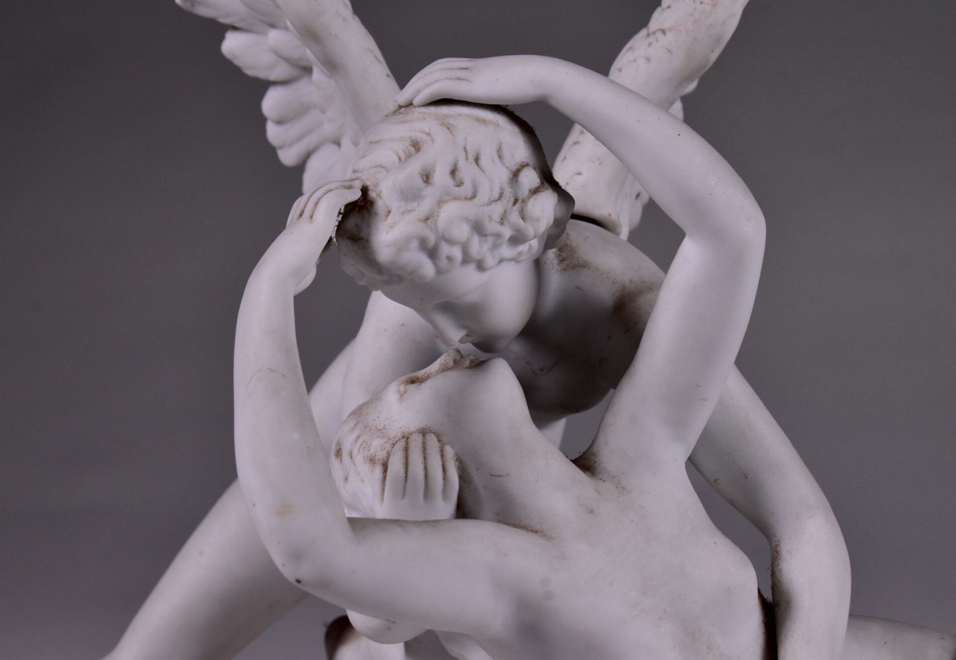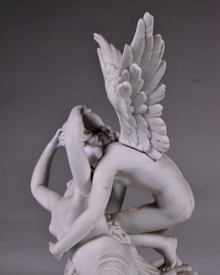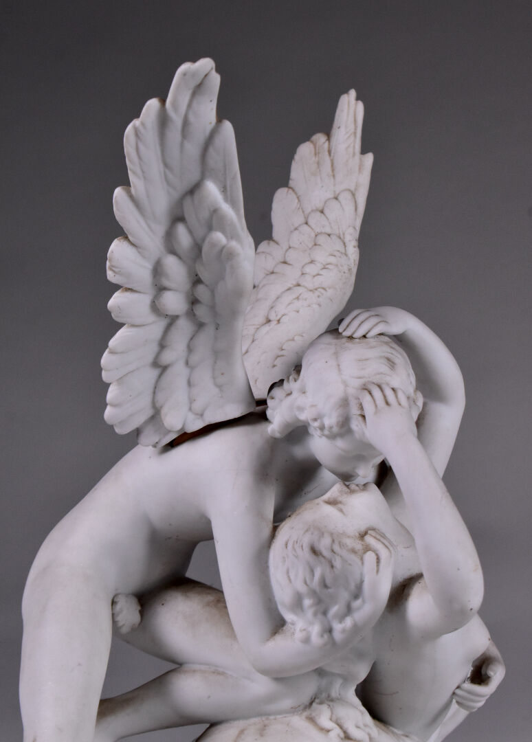 D’après CANOVA. Le Psyché ranimée par le baiser de l’amour. Sujet en biscuit (petits éclats). Haut. : 30 cm.