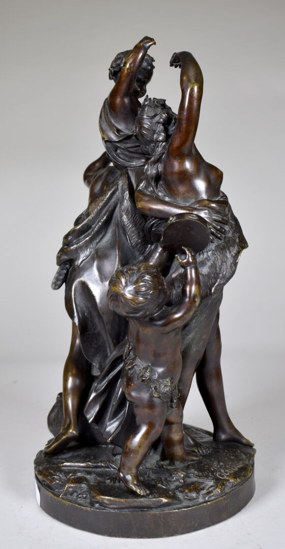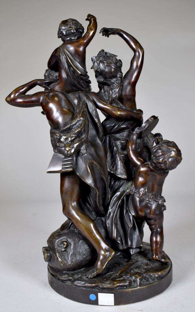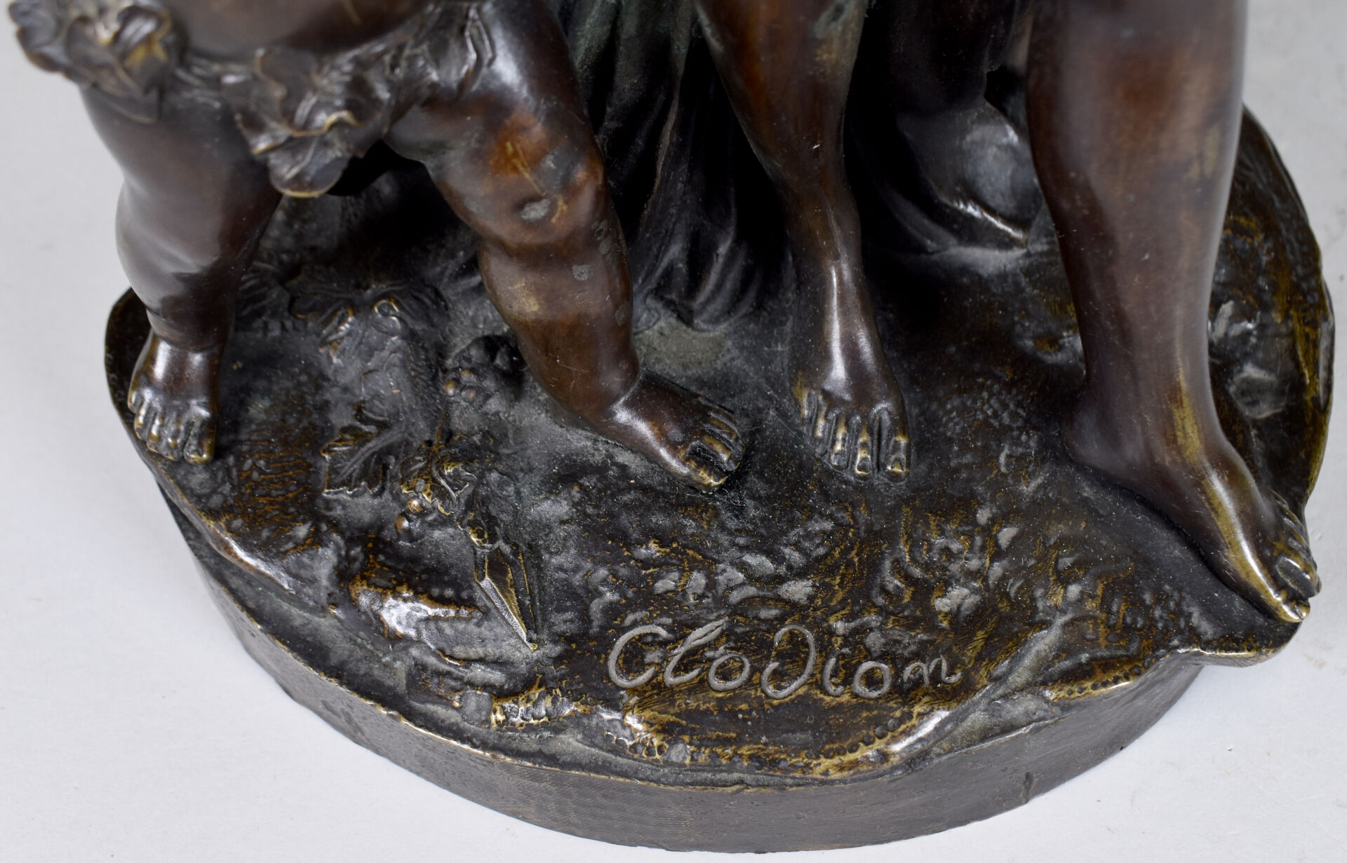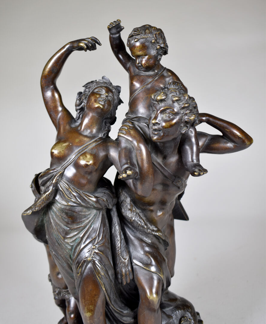 D’après Claude MICHEL dit CLODION (1738-1814). L’enfance de Silène, bronze à patine brun, signé à la base et marqué « Cresson Editeurs » (manque un attribut). Haut. : 41 cm.