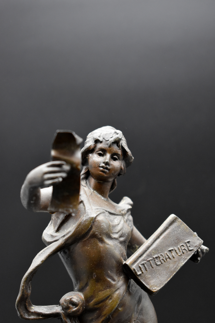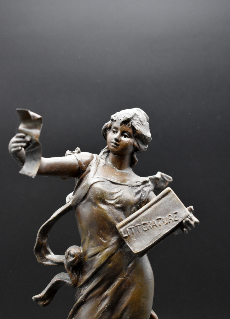 D’après GRISARD. Par Géo Maxime. « Littérature » Régule à patine brun (un enfoncement à la base). Haut. : 30 cm.