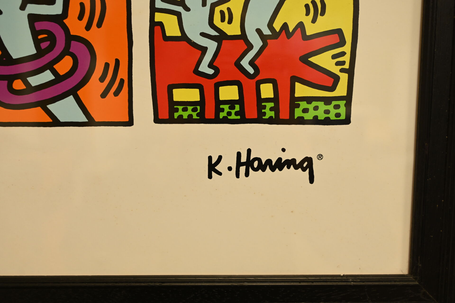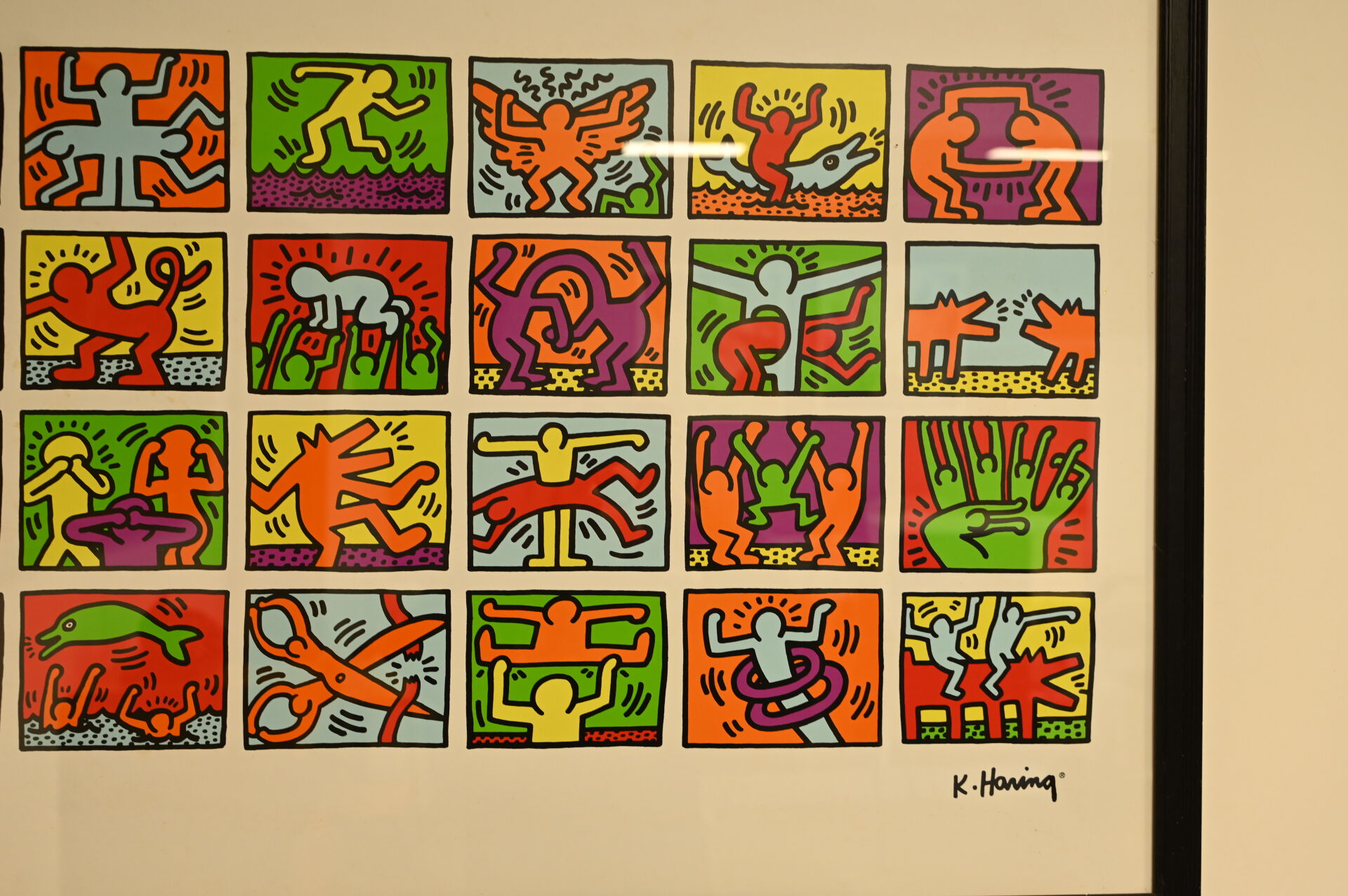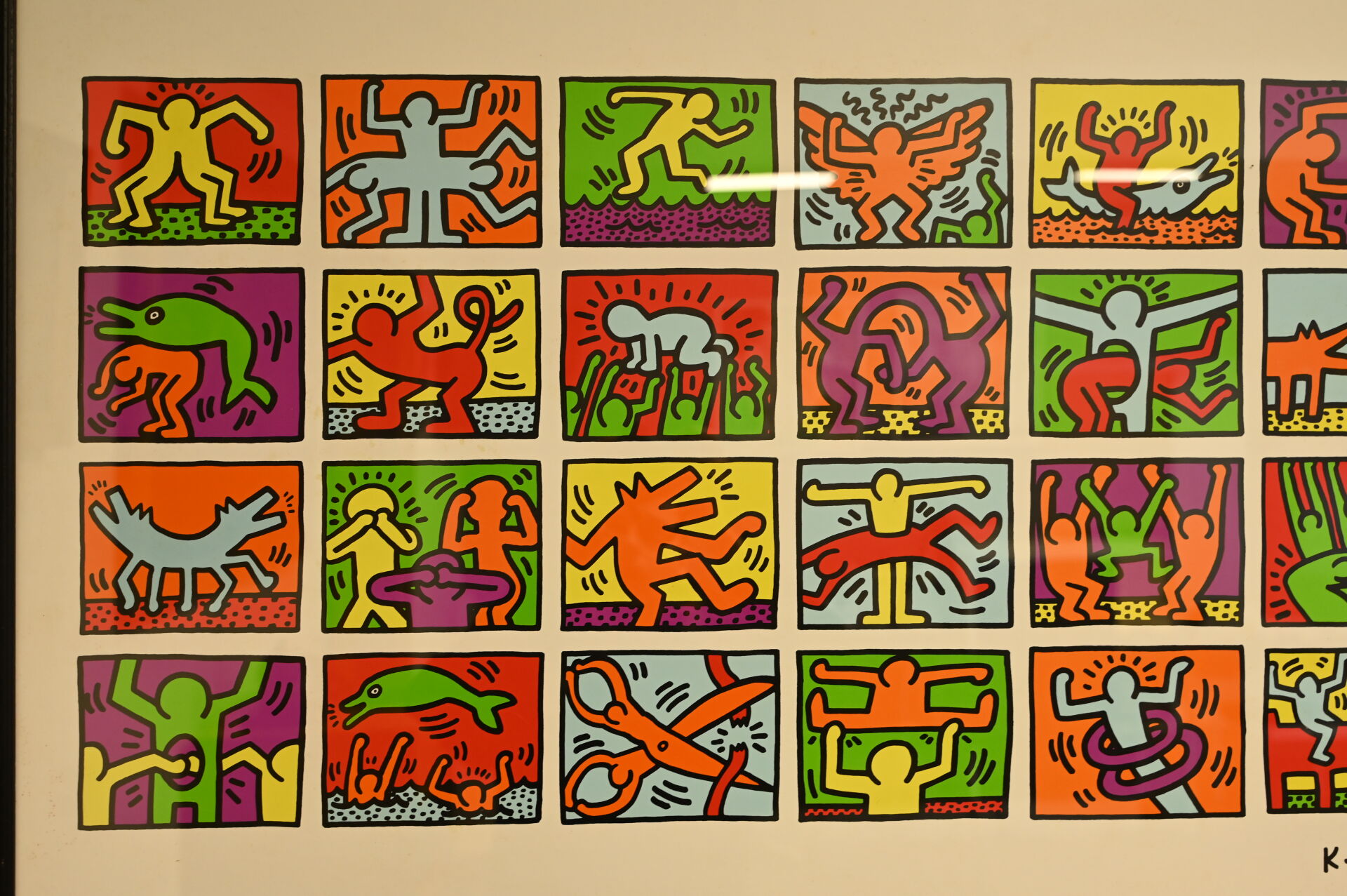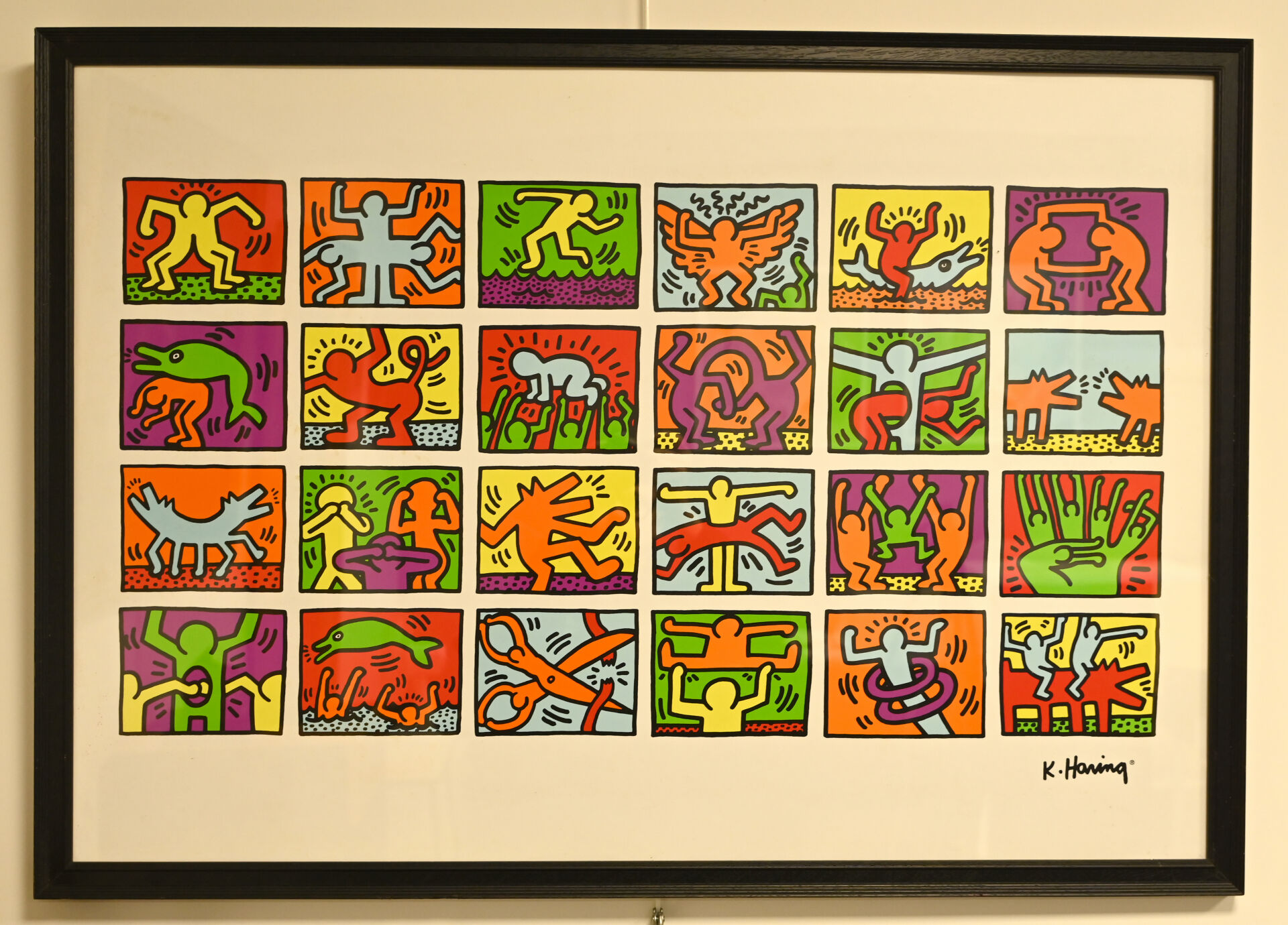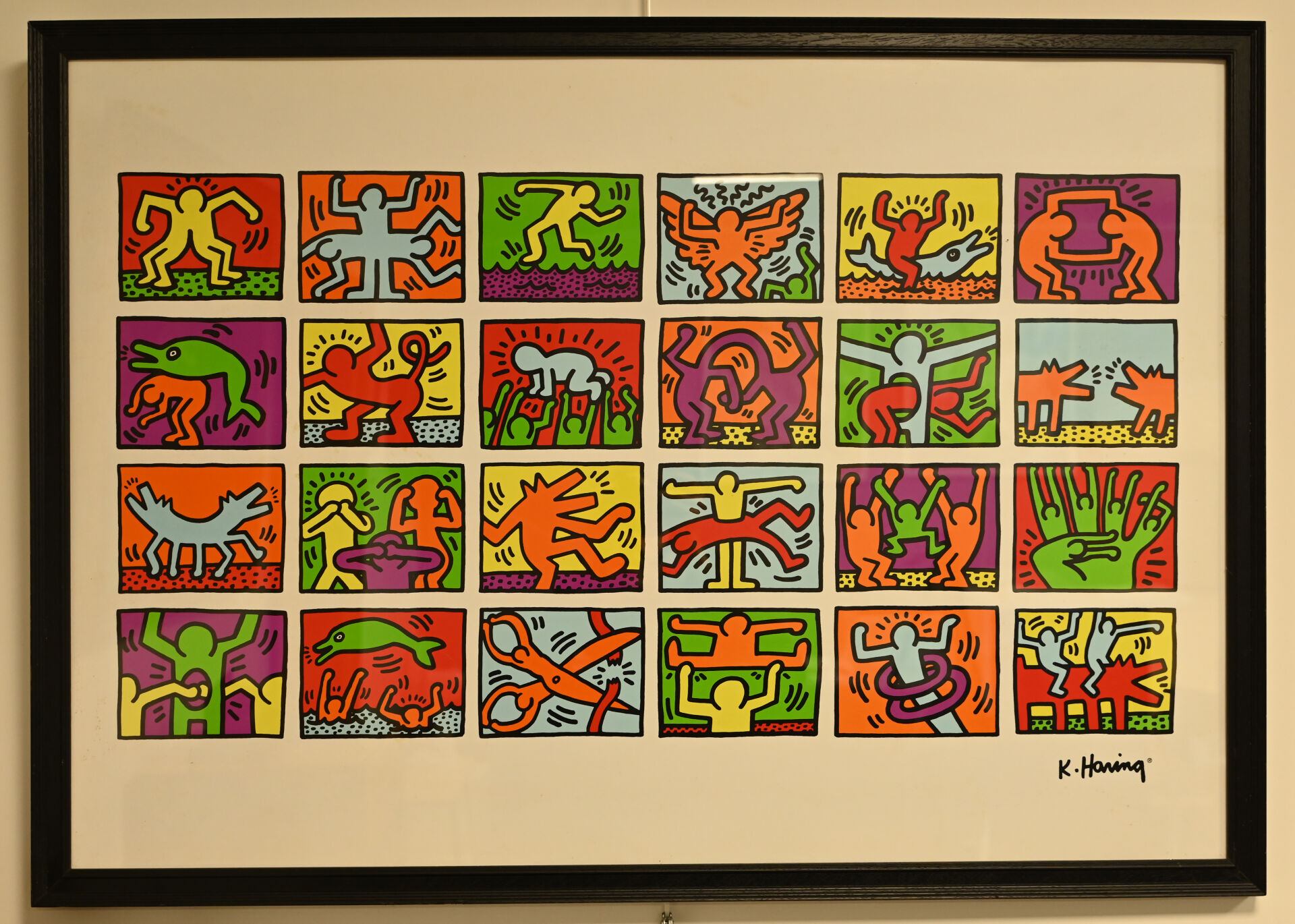 D’après Keith HARING (1958-1990). Composition d’oeuvres. Reproduction en couleurs. 68,5 x 99 cm à vue.