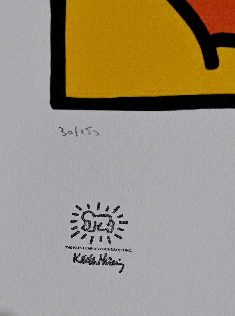 D’après Keith HARING (1958-1990). Sans titre. Lithographie signée dans la planche, numérotée 30/150 en bas à gauche, cachet de la fondation et cachet sec dans le papier. 70 X 50 cm.