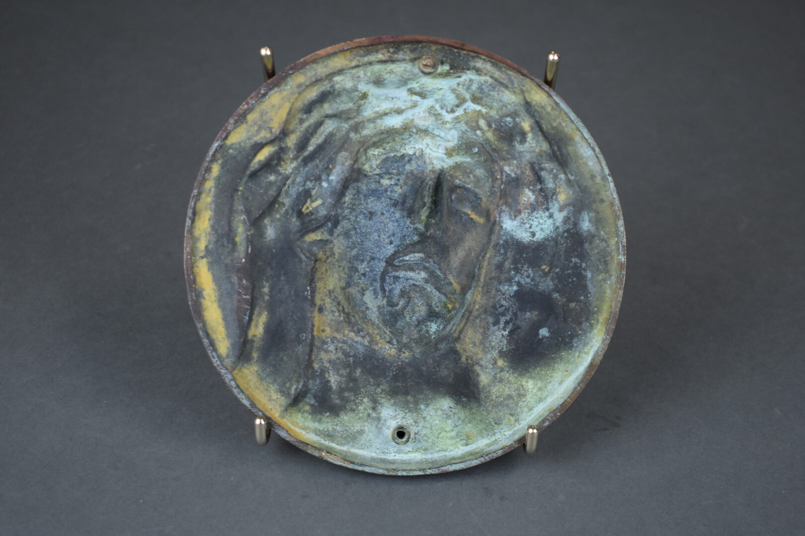 D’après P. DUBOIS. Médaille en bronze représentant un christ à la couronne d’épines. Signé. Diam. : 15,5 cm.