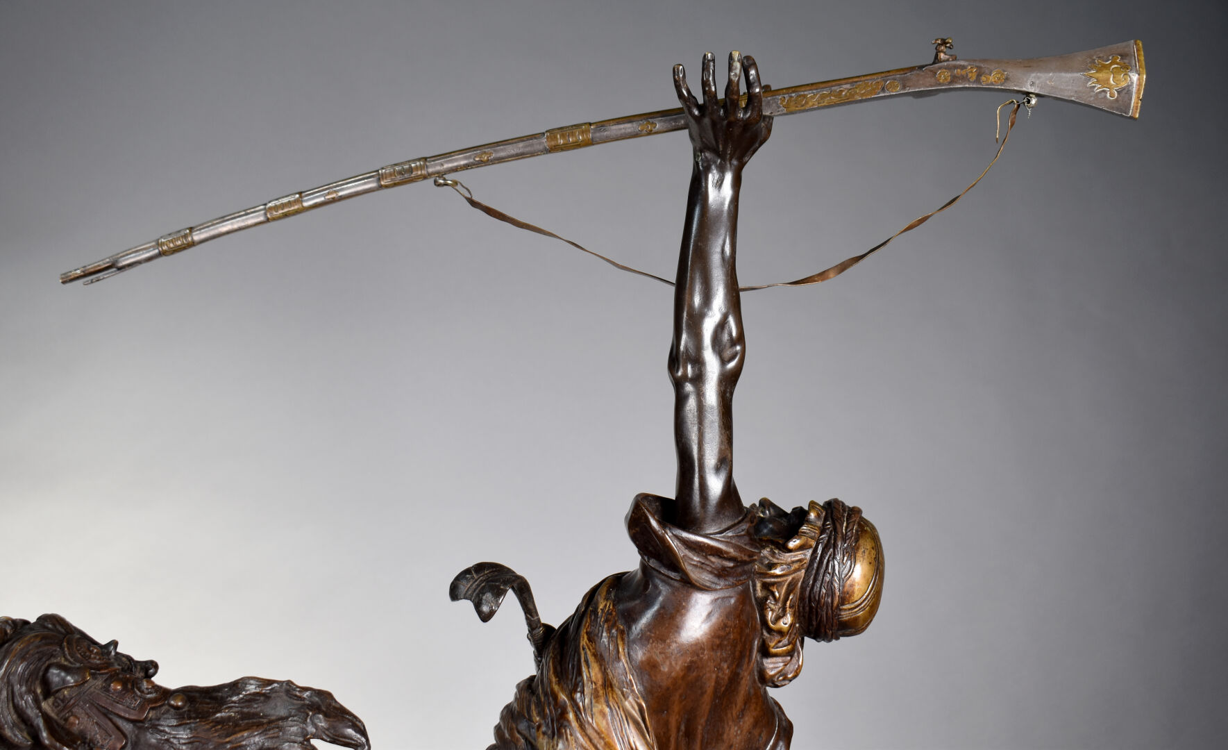 D’après Prosper LECOURTIER (1855-1924). « Fantasia ». Bronze à patine brun nuancé or et rouge. Signé à la base. Haut. : 84 cm.