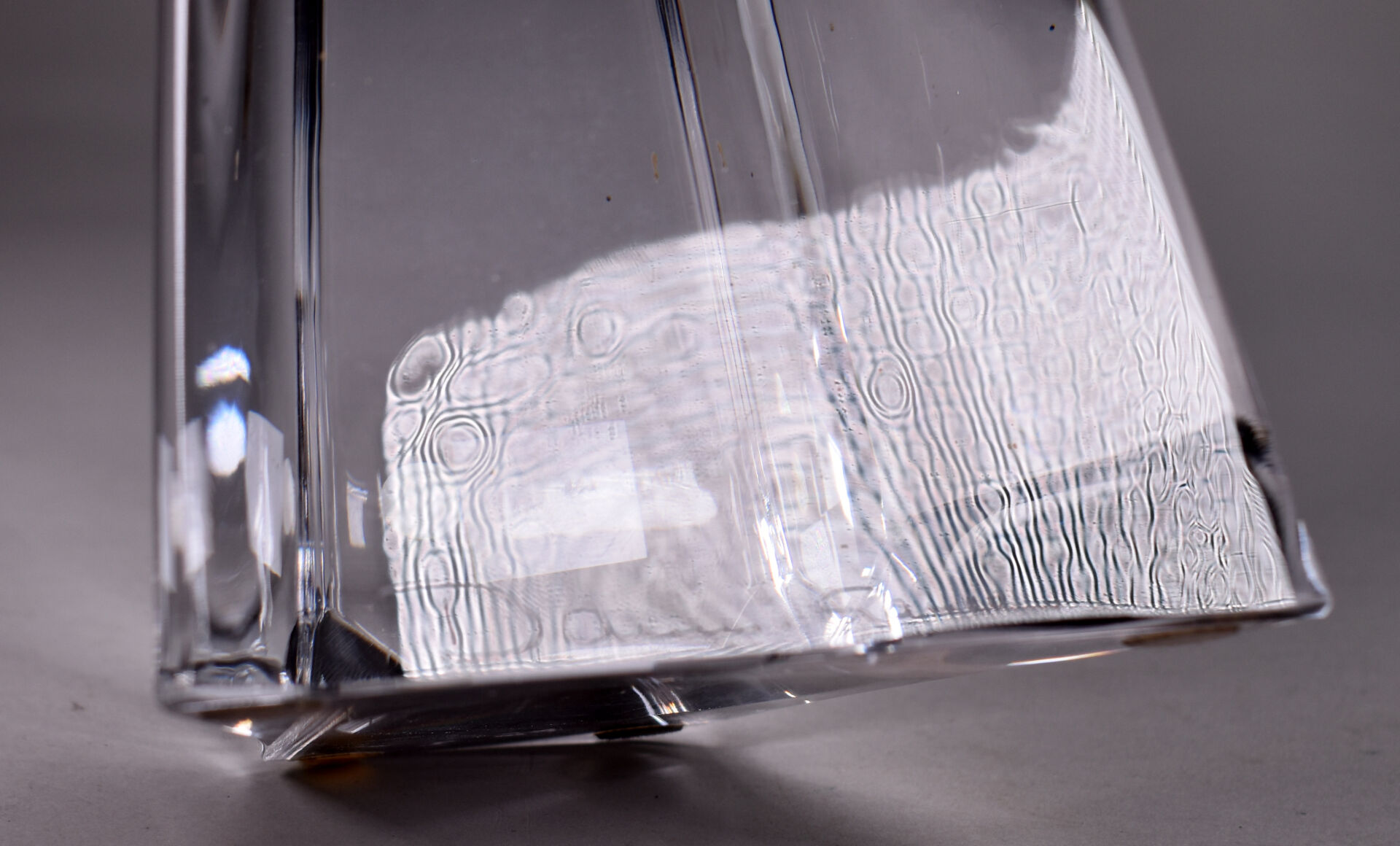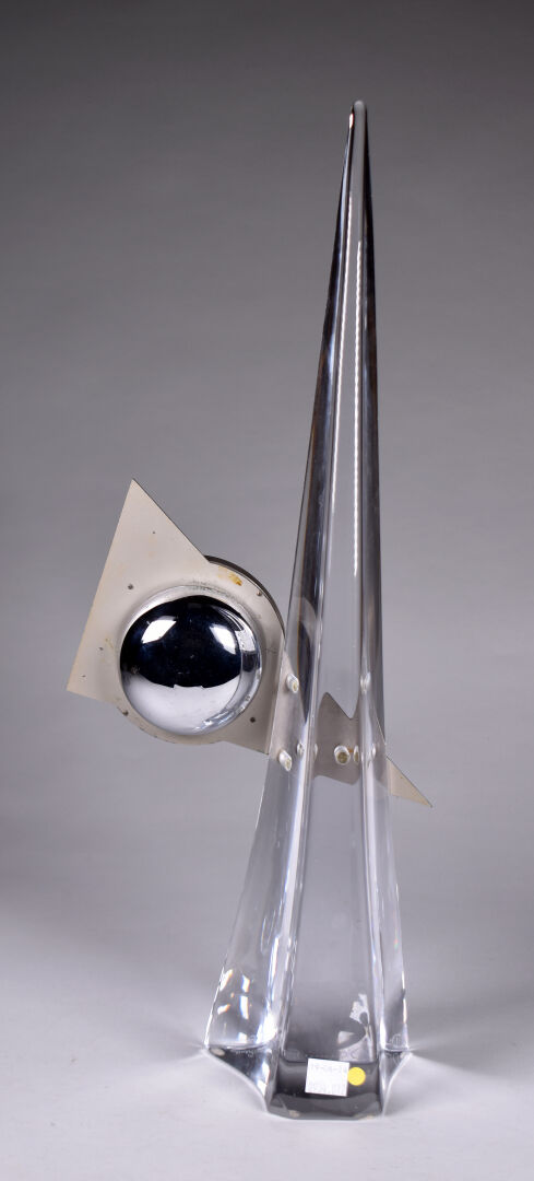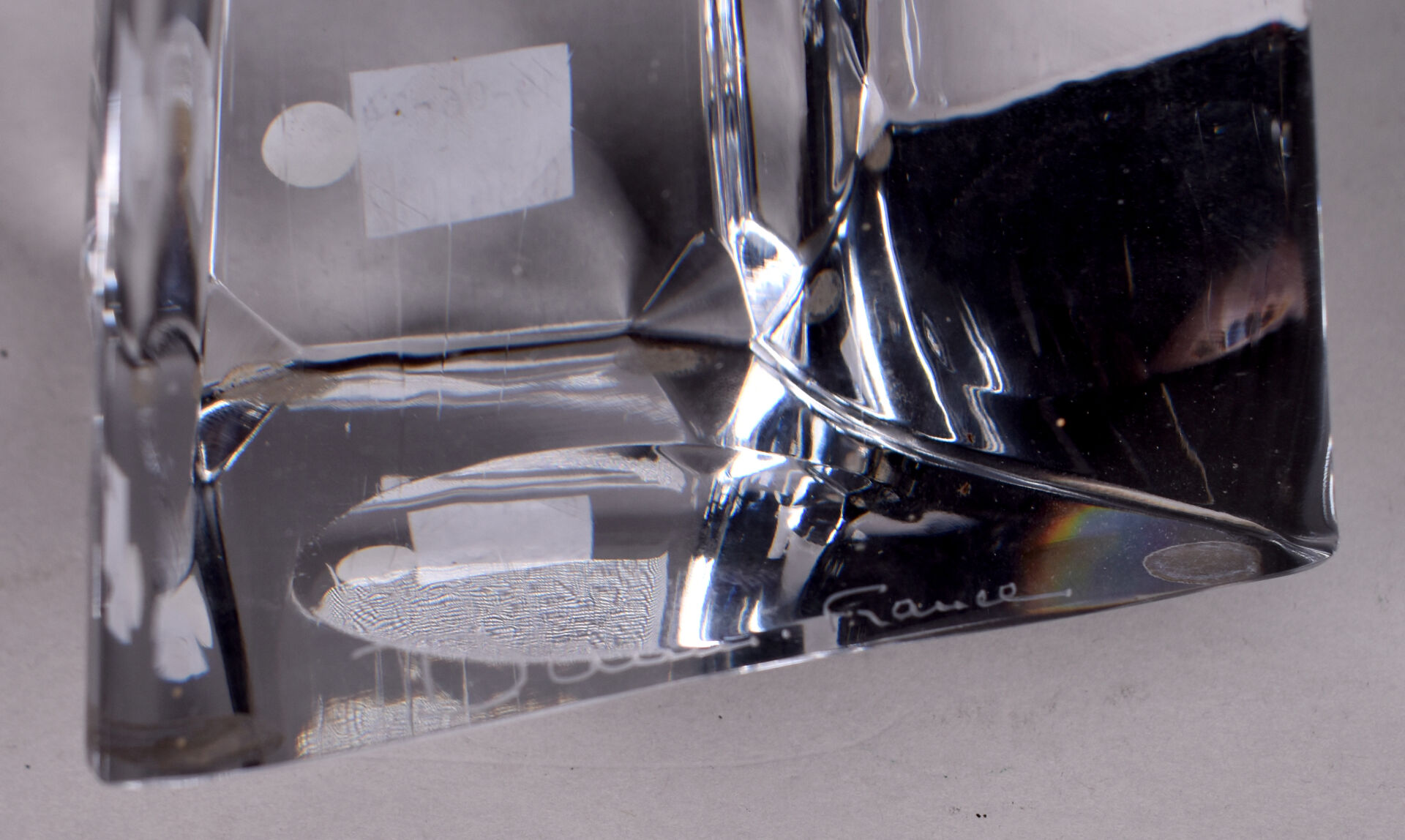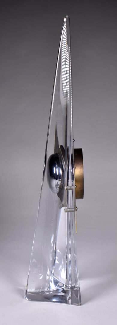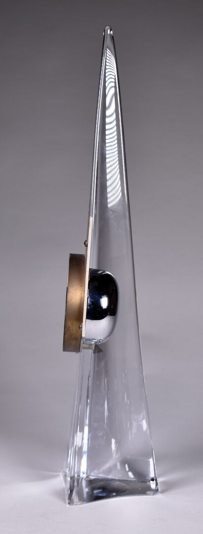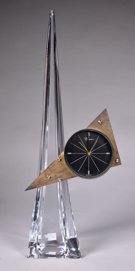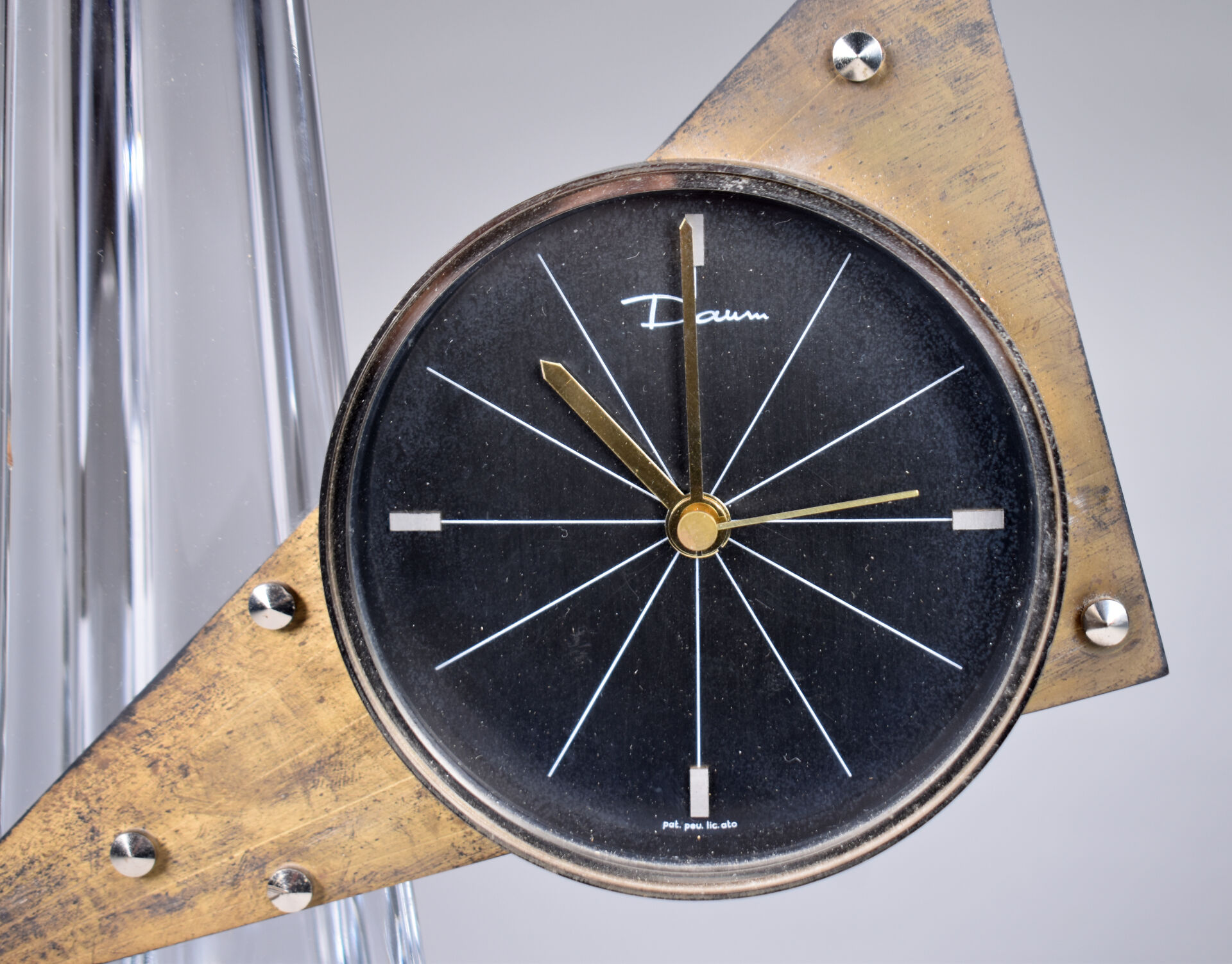 DAUM FRANCE. Horloge de table en cristal et métal. Signée à la base. Haut. : 50 cm.