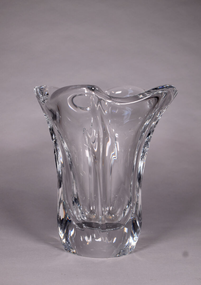 DAUM FRANCE. Important vase cornet à cotes pincées en cristal (égrenures et éclats à la base). Haut. : 33,5 cm.