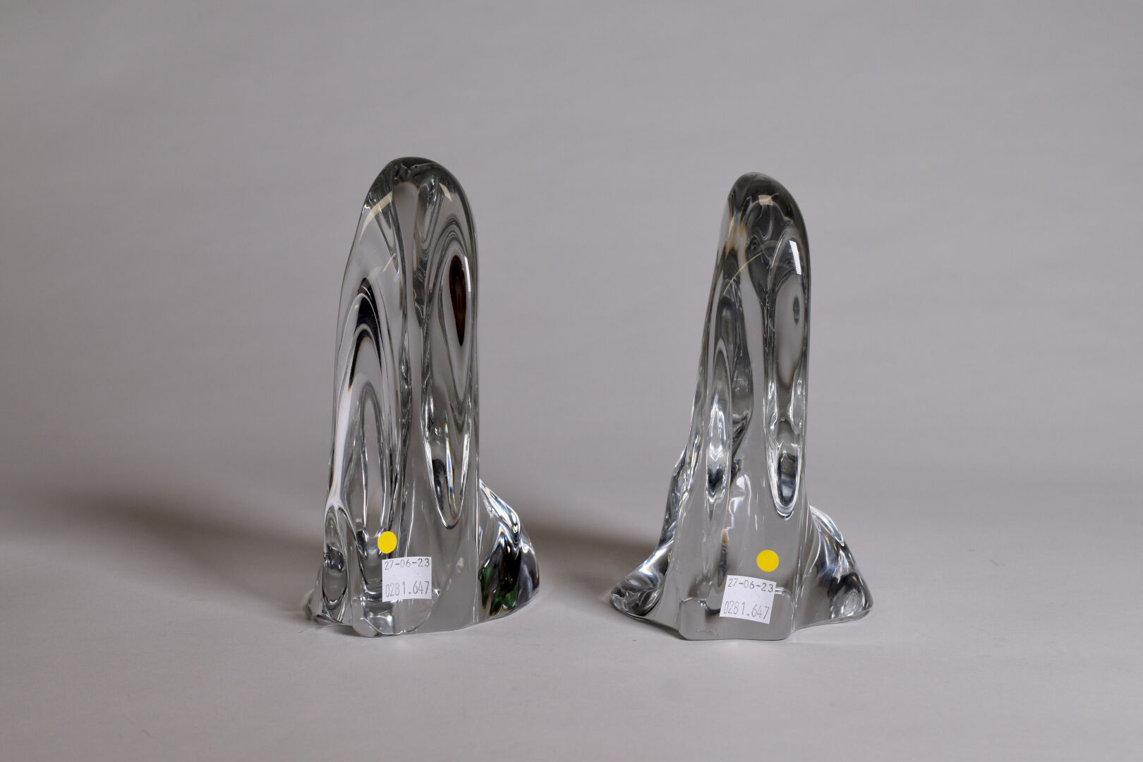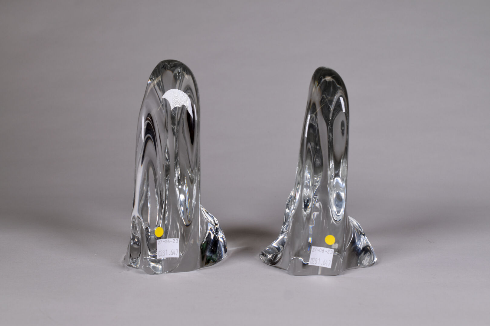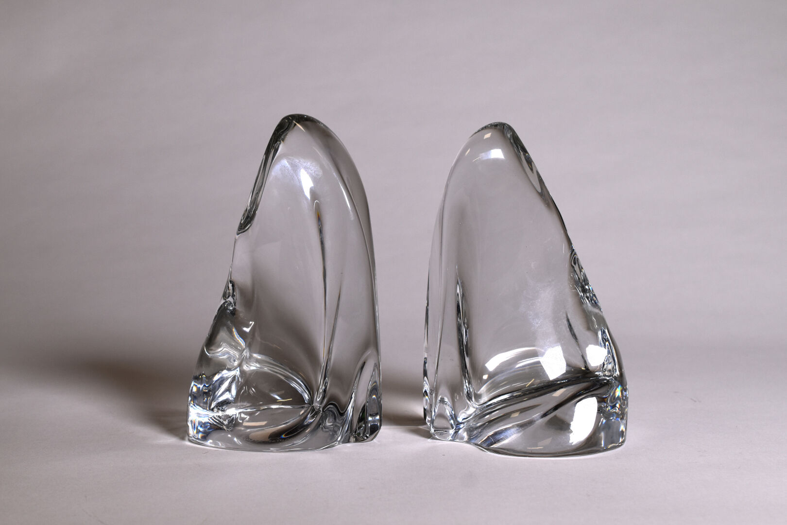 DAUM FRANCE. Paire de serre-livres en cristal figurant des rochers. Signés à la croix de Lorraine à la base. Haut. ; 19 cm.