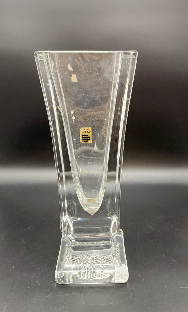 DAUM FRANCE. Vase cornet sur piédouche en cristal. Signé à la base. Haut. : 34 cm.