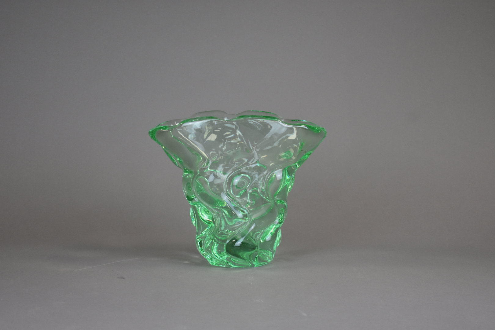 DAUM NANCY, vase cornet en cristal ondulation verre. Signé à la base.