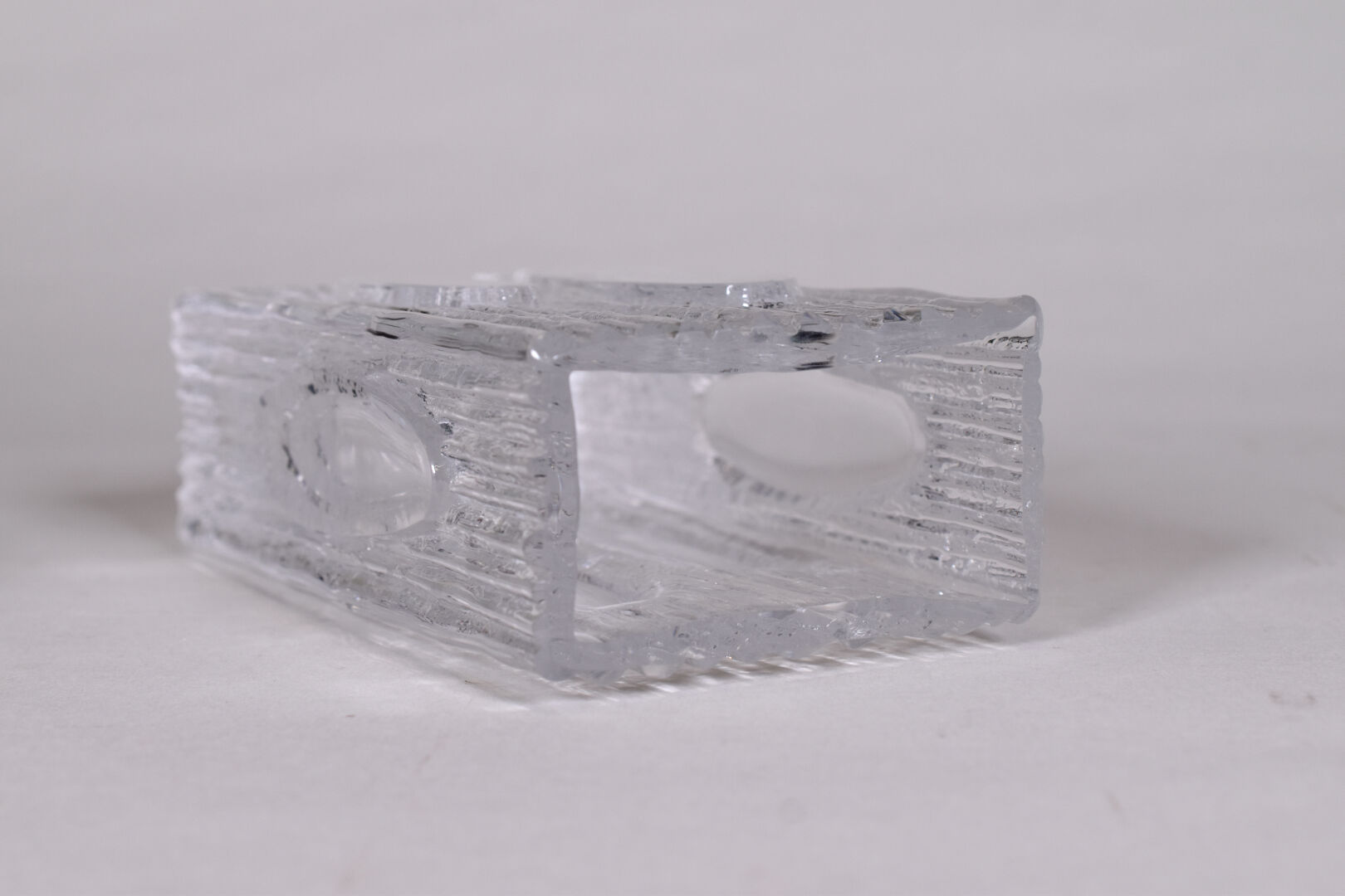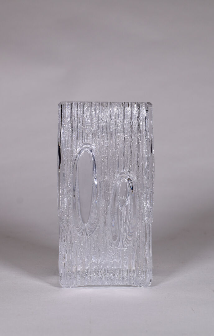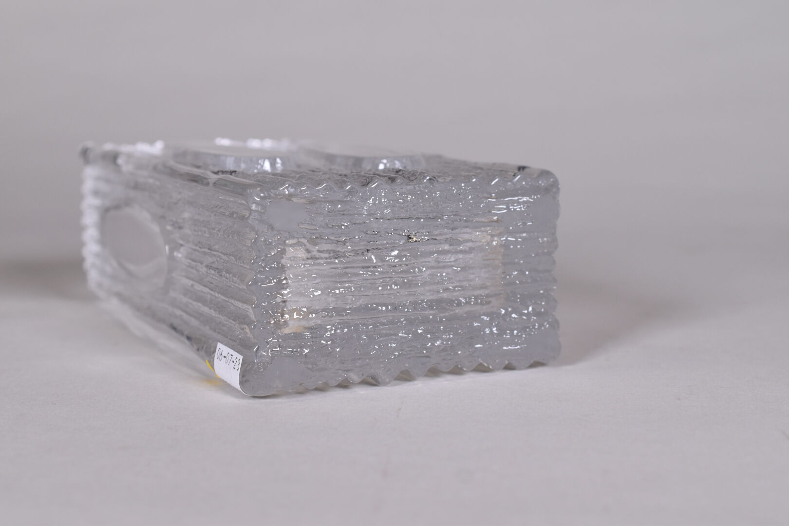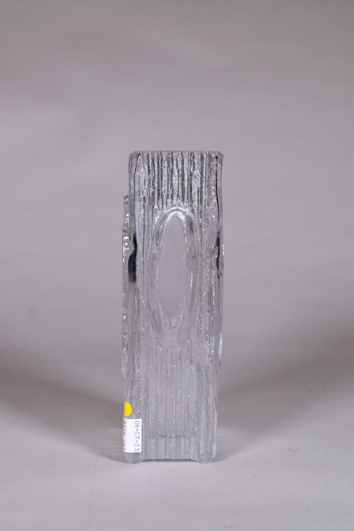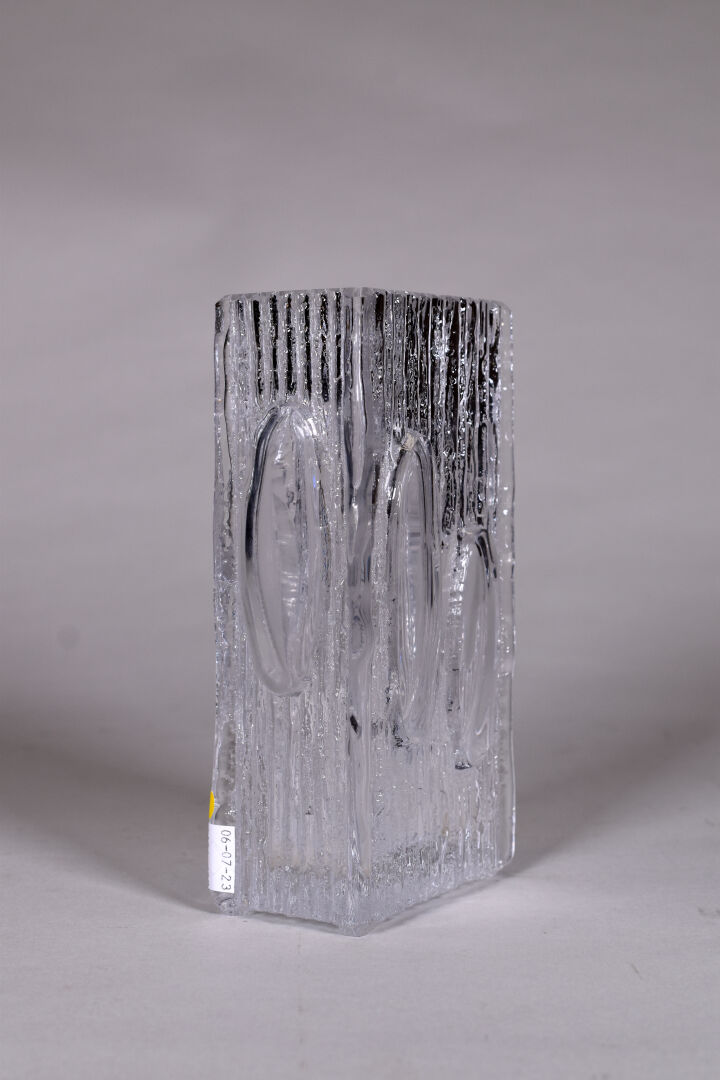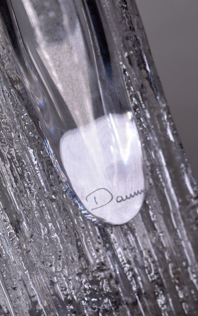 DAUM. Vase de section rectangulaire en cristal moulé modèle cratère (?). Signé à la pointe. Haut. : 19 cm.