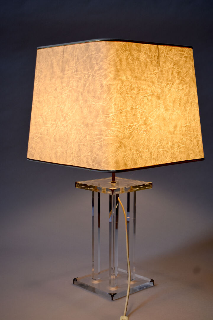 David LANGE (XXe – XXIe siècle). Lampe à poser modèle « cristal » en plexiglas et métal. Haut. : 61,5 cm.