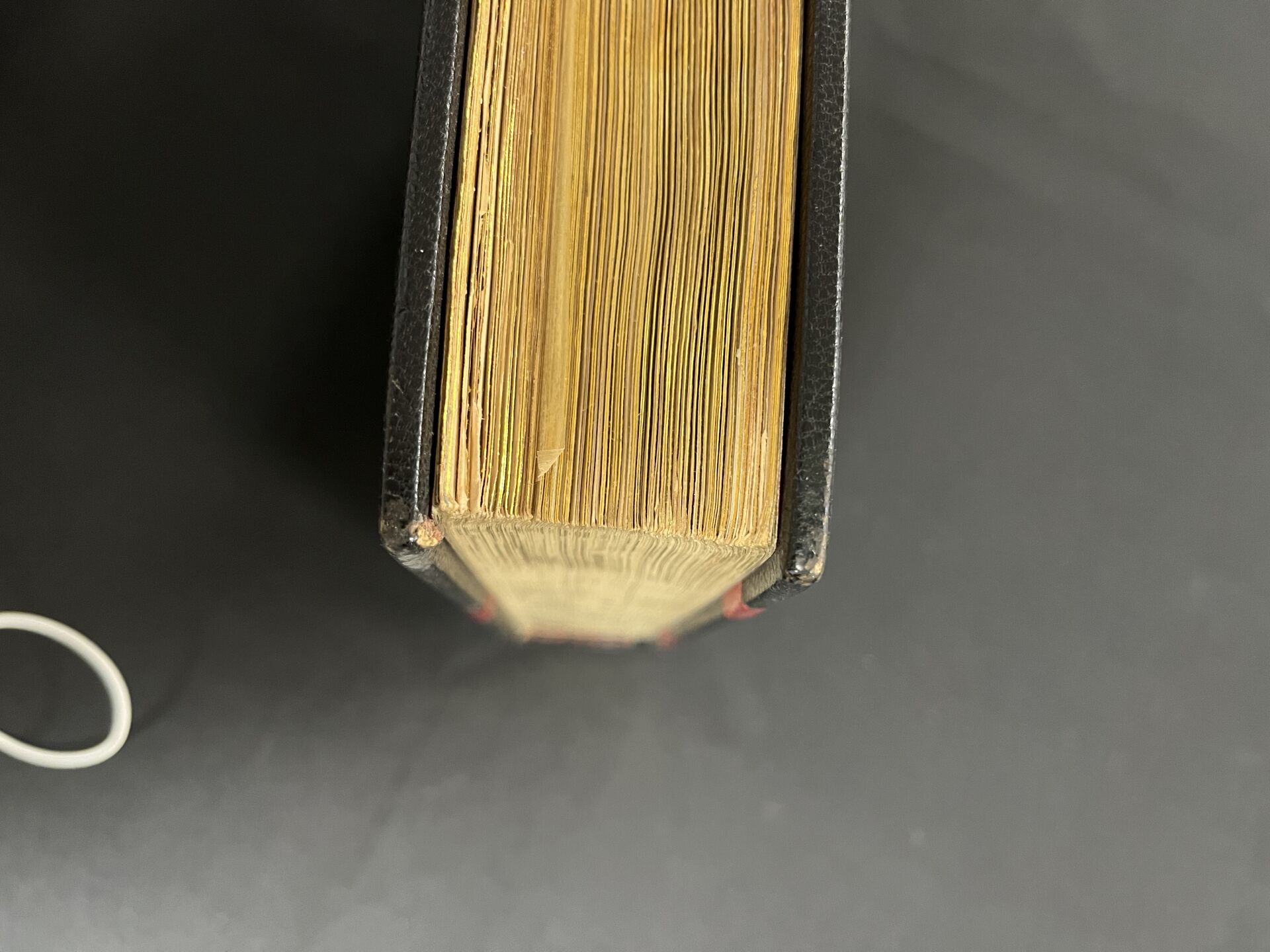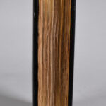 [DECARIS]. BARRÈS (M.). DU SANG DE LA VOLUPTÉ ET DE LA MORT. Paris, Éditions du Bois Sacré, 1930. Grand in-4 maroquin noir, plats décorés de larges listels verticaux de maroquin rouge et grenat avec au centre du 1er plat un décor de cercles concentriques au palladium, dos lisse avec titre doré, doublures de moire rouge dans un encadrement de listels de maroquin, doubles gardes de papier marbré, tranches dorées, couverture conservée (Marot-Rodde). ÉDITION ILLUSTRÉE de 92 COMPOSITIONS originales gravées au burin d’Albert DECARIS. Tirage limité à 316 exemplaires. UN des 55 numérotés sur JAPON Impérial comprenant une SUITE sur papier de RIVES de 37 illustrations à pleine page. MAGNIFIQUE EXEMPLAIRE. ¶ Monod, 1011 – Fléty, 121.