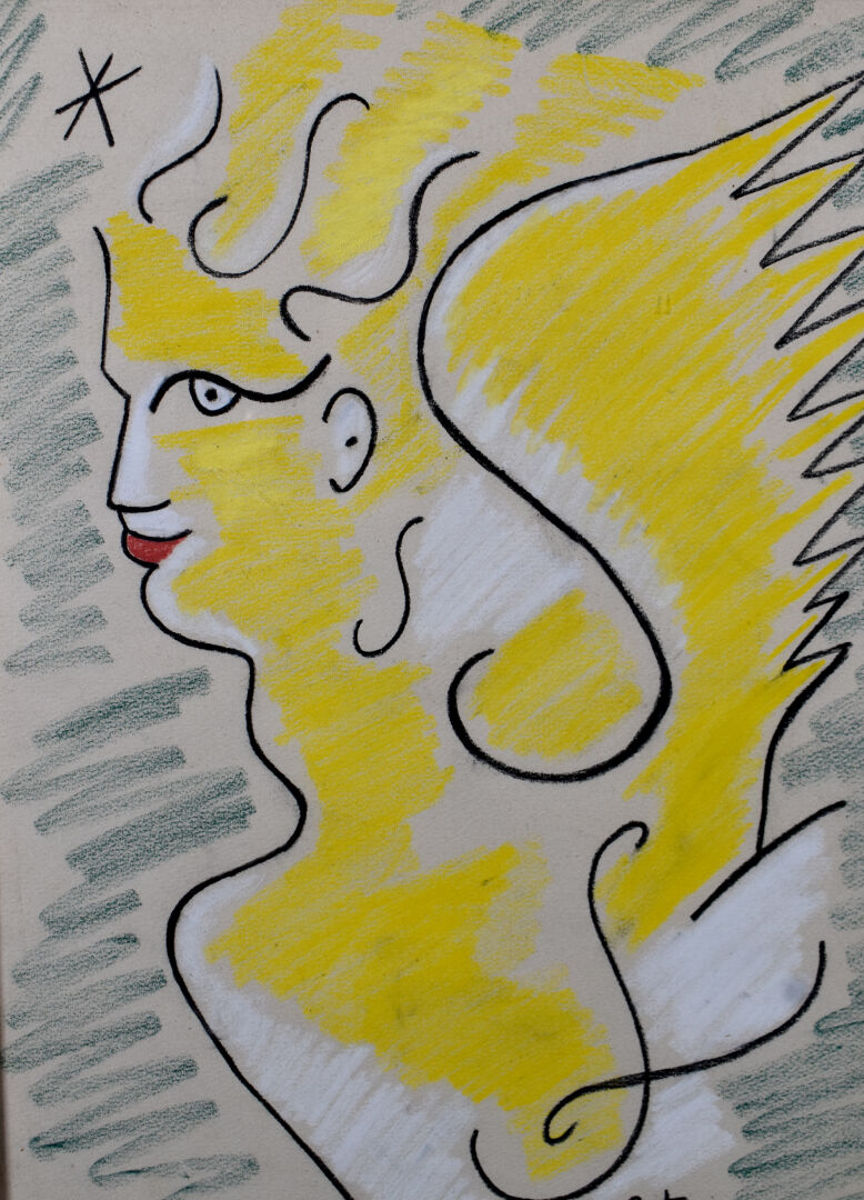 Dessin au pastel gras. Porte une signature 1960. 39 x 28,5 cm. à vue.