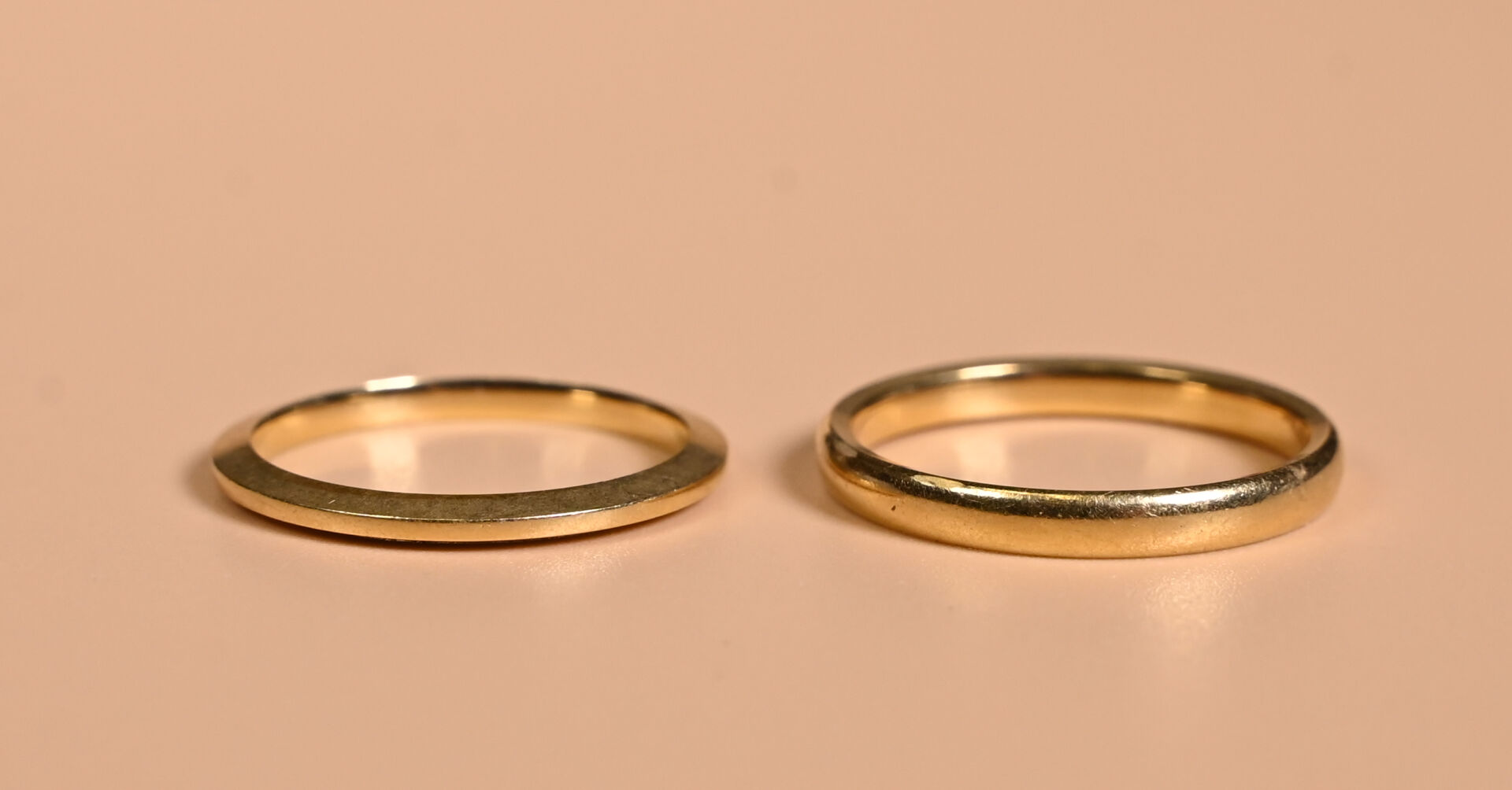 Deux anneaux en or jaune 18K 750/1000e. Poids : 5,36 g.