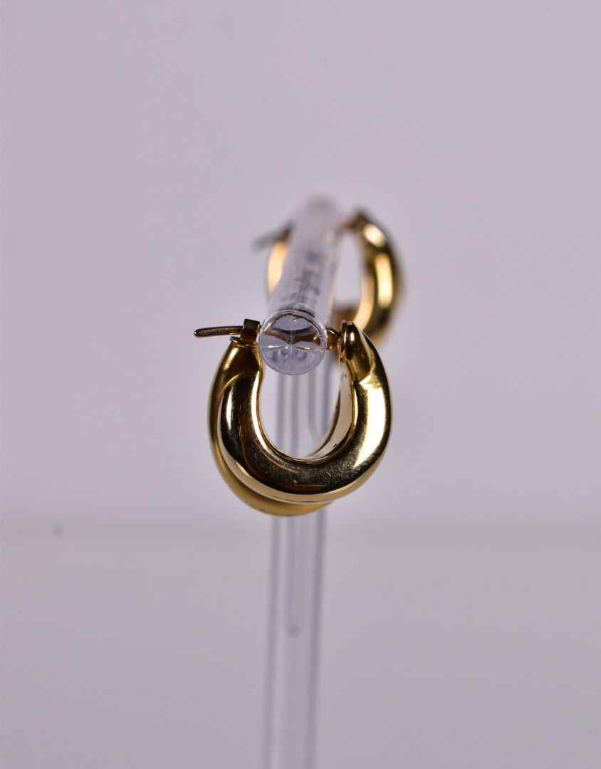 Deux boucles d’oreilles en or jaune 18K 750/1000e. Haut. : 1,5 cm. Poids. : 2,7 g.