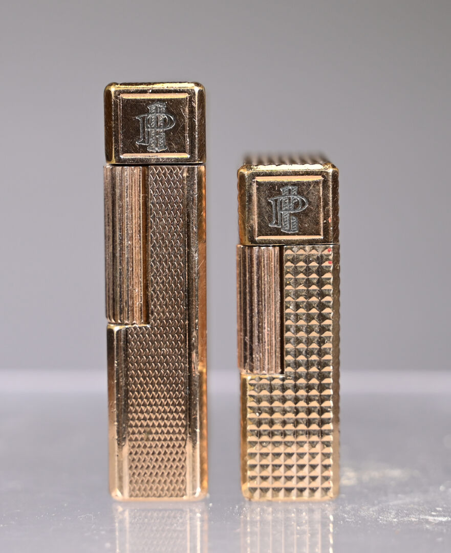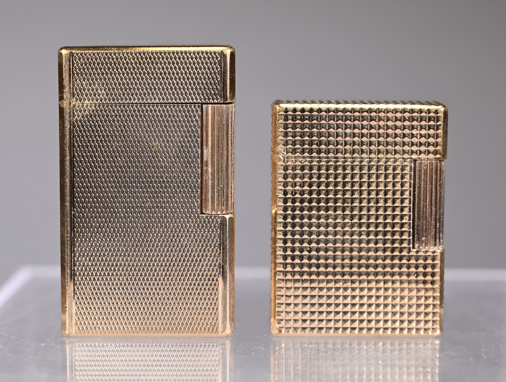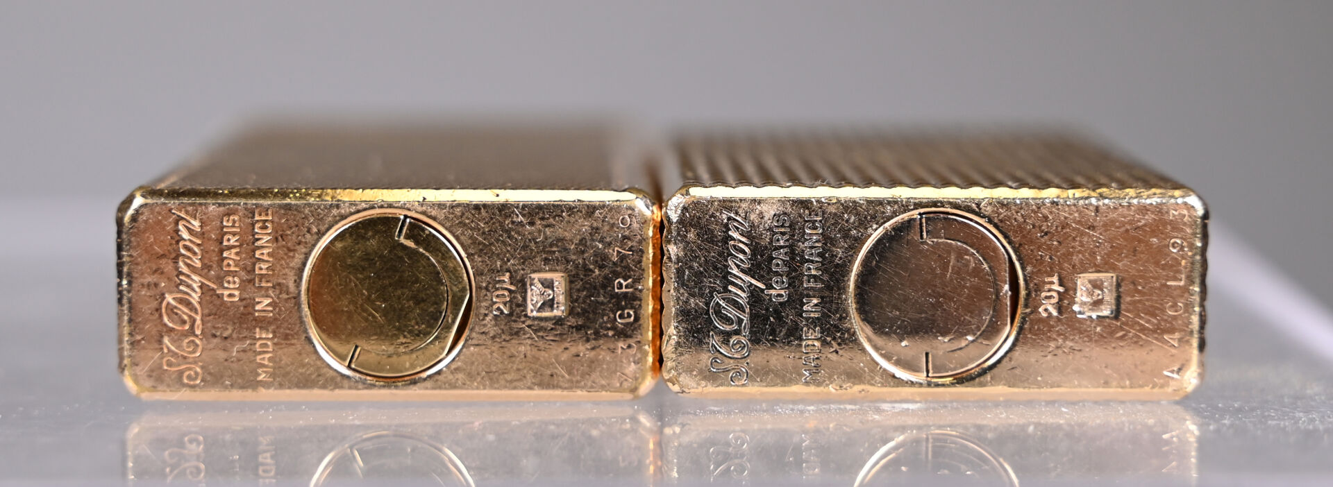 Deux briquets DUPONT en métal doré (usures), 1Monsieur et 1 Madame (usures).