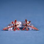 Deux broches motif insecte en or 18K 750/1000e et argent 925/1000e ornées de pierres du Rhin (parties manquantes et accidents). Poids brut. : 6 g.