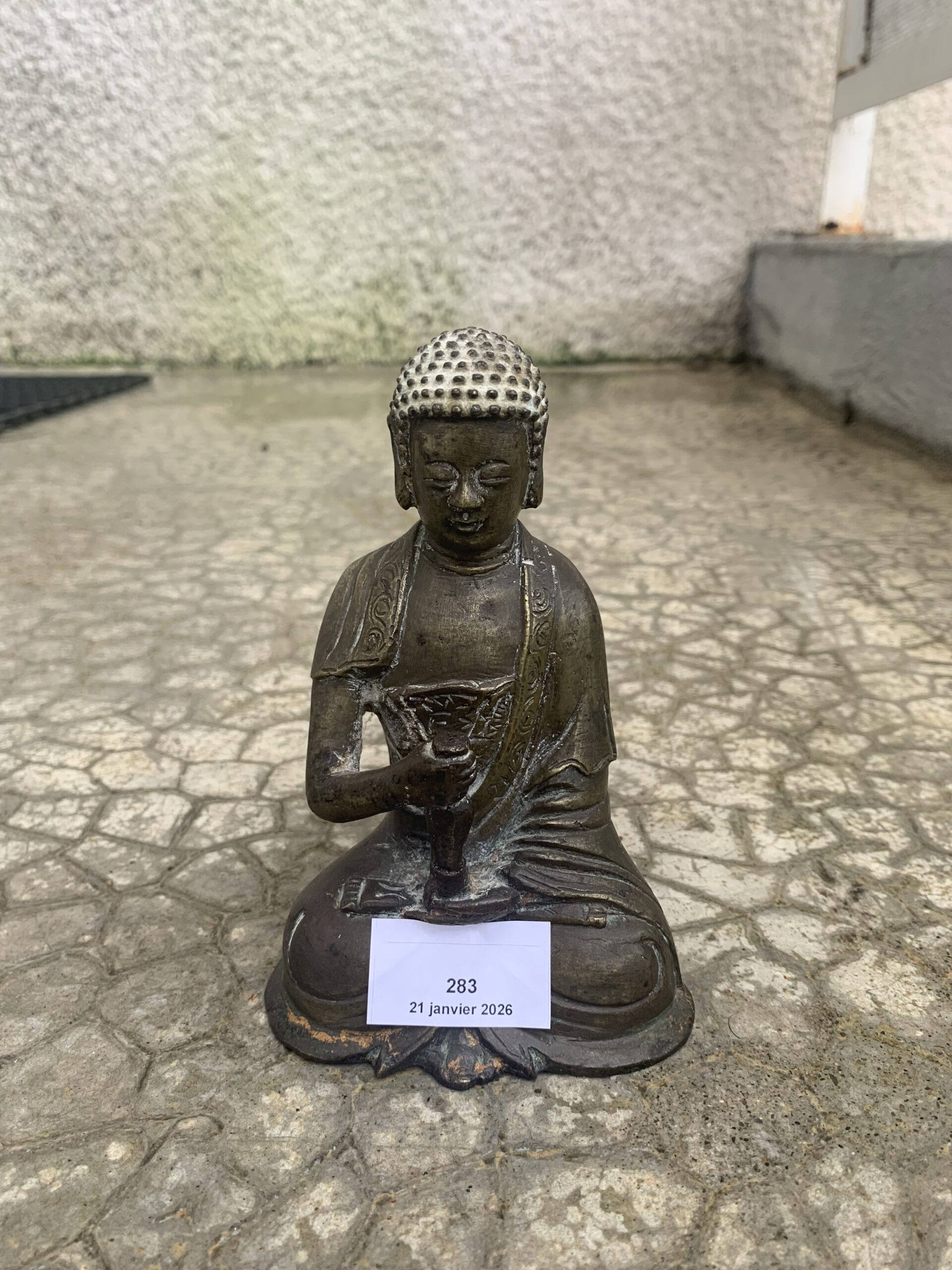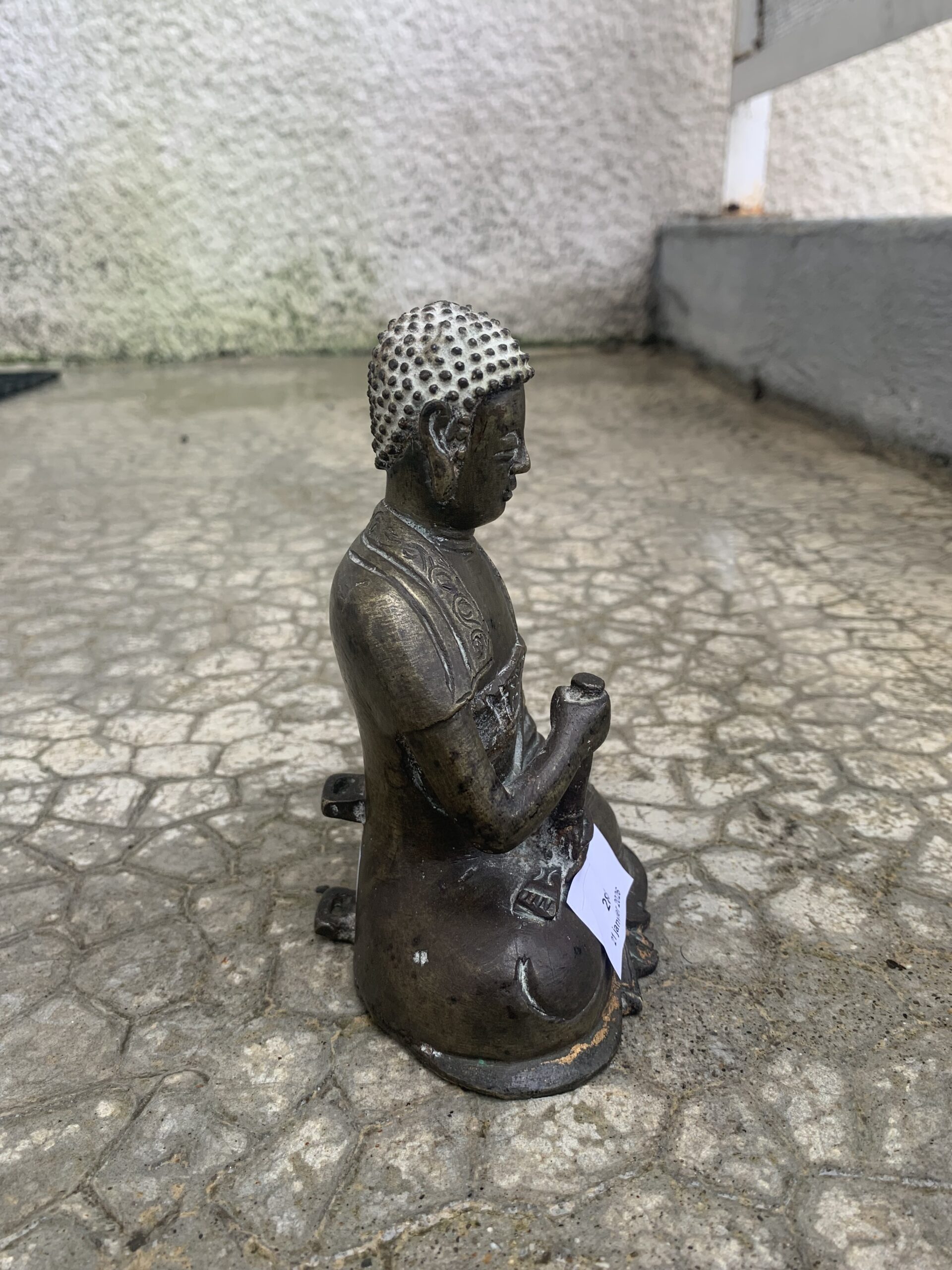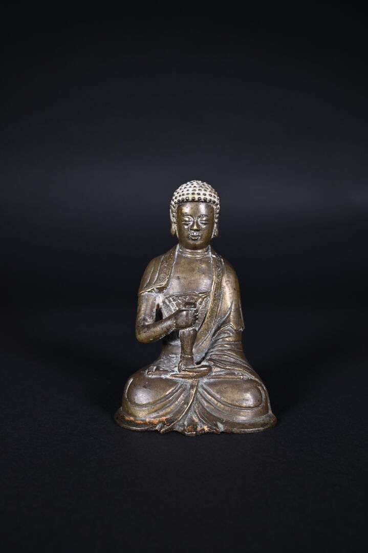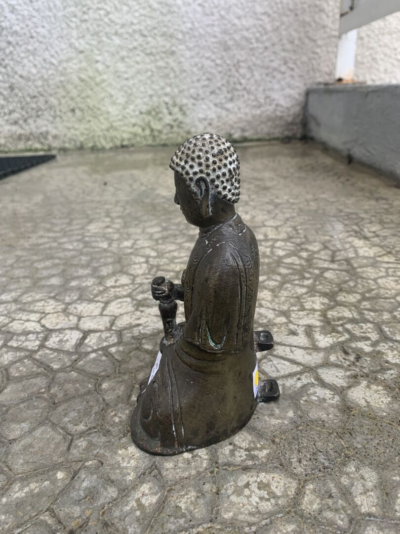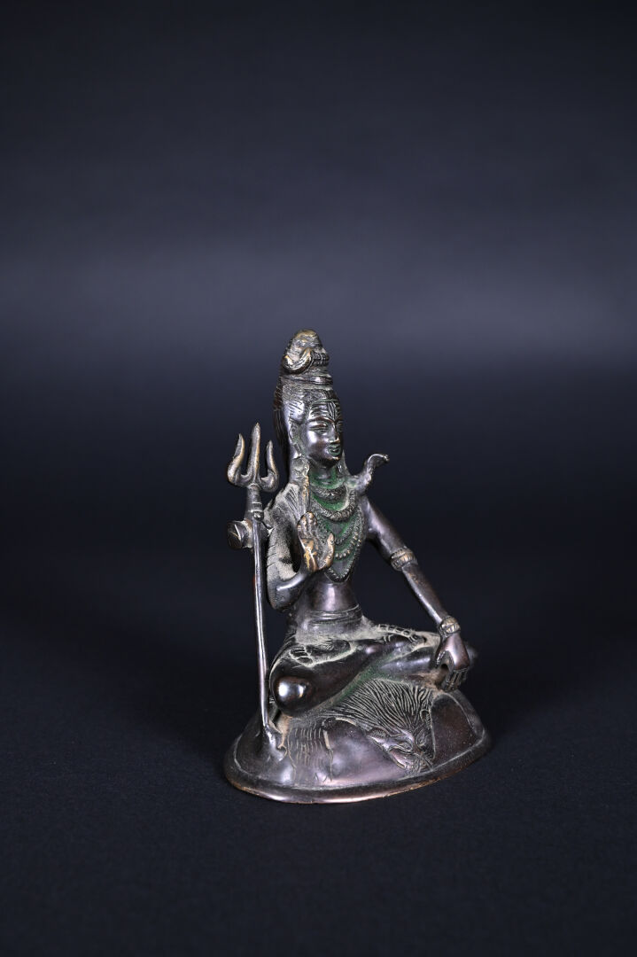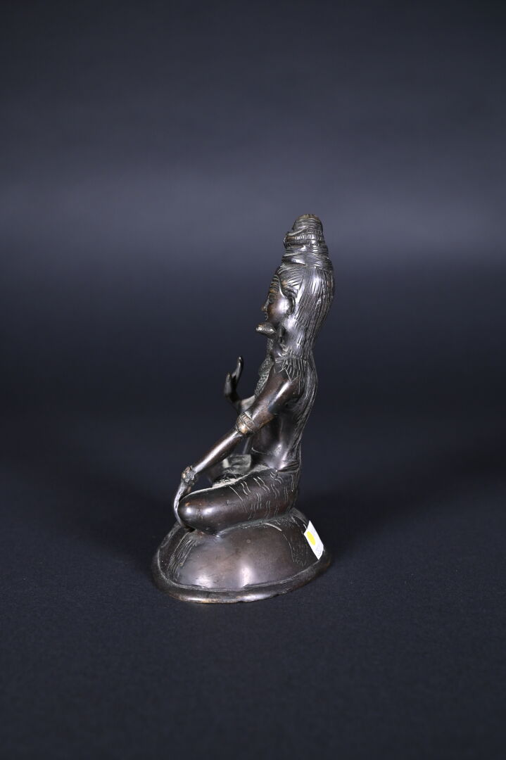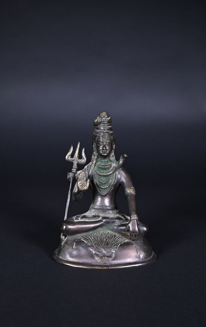Deux bronzes, un représentant un bouddha et l’autre une divinité au trident. Asie, XXe siècle. Haut. : 19,5 cm et Haut. : 15 cm.
