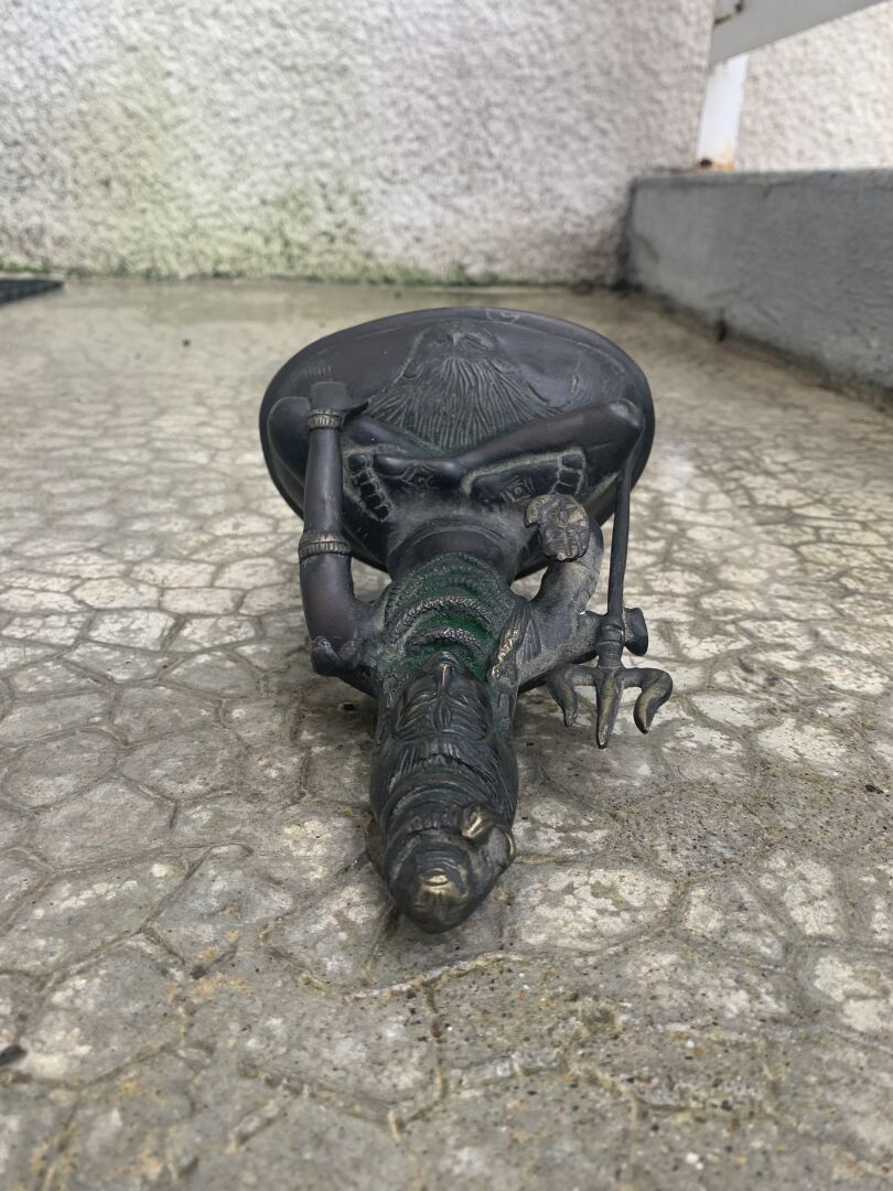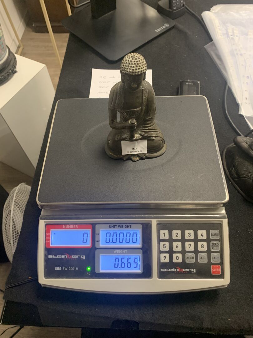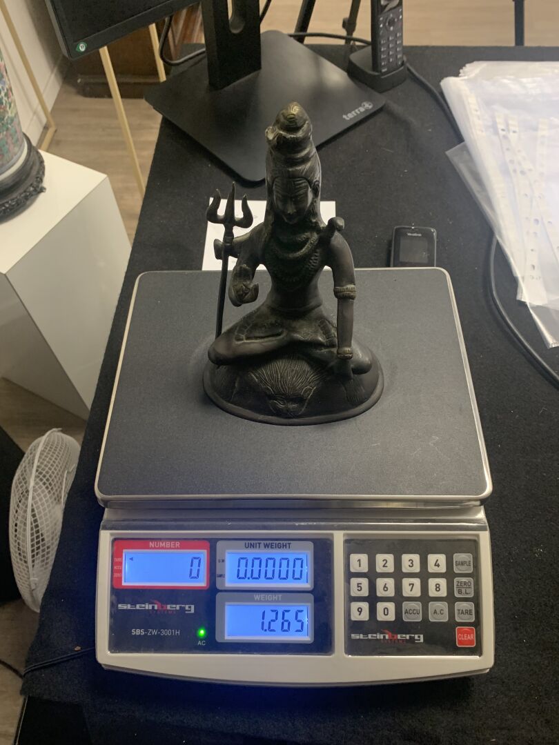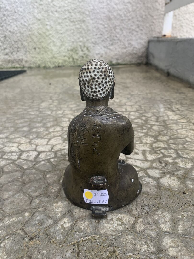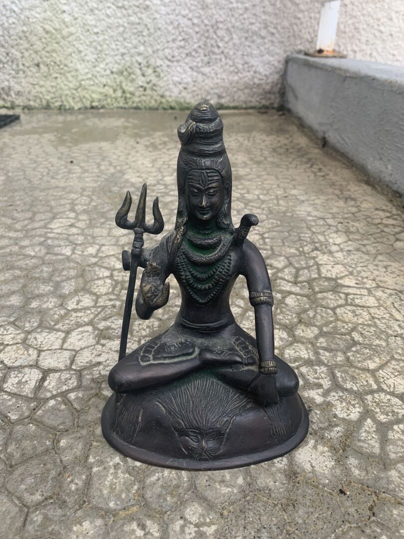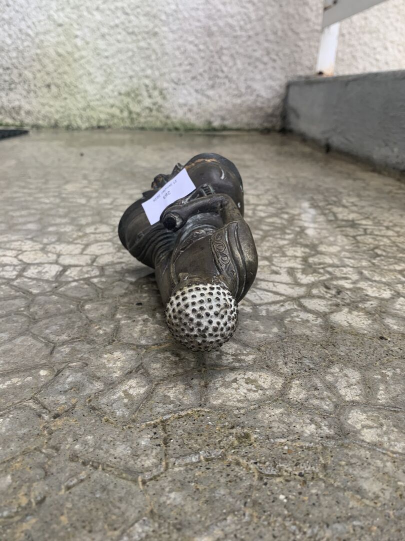 Deux bronzes, un représentant un bouddha et l’autre une divinité au trident. Asie, XXe siècle. Haut. : 19,5 cm et Haut. : 15 cm.