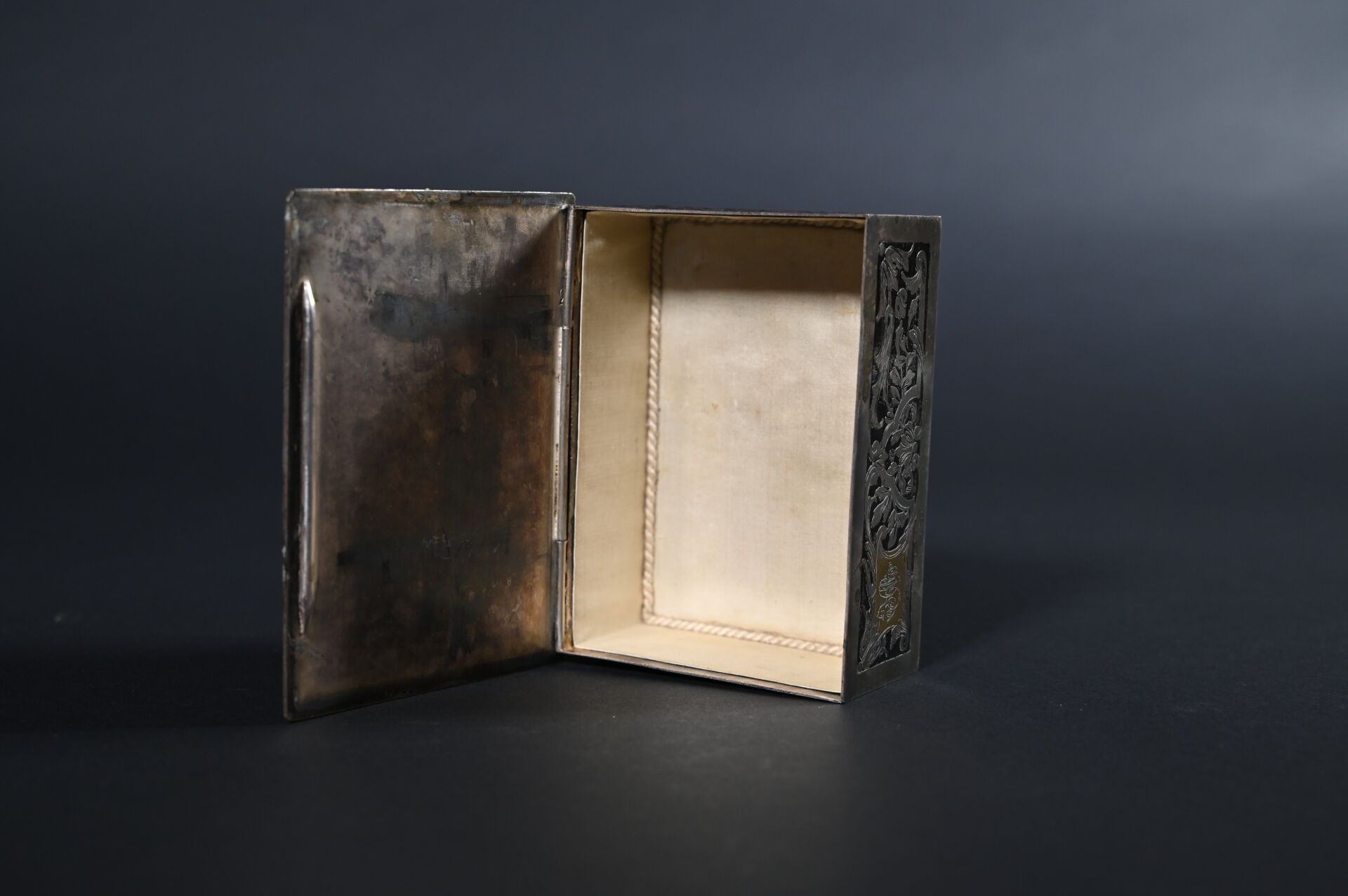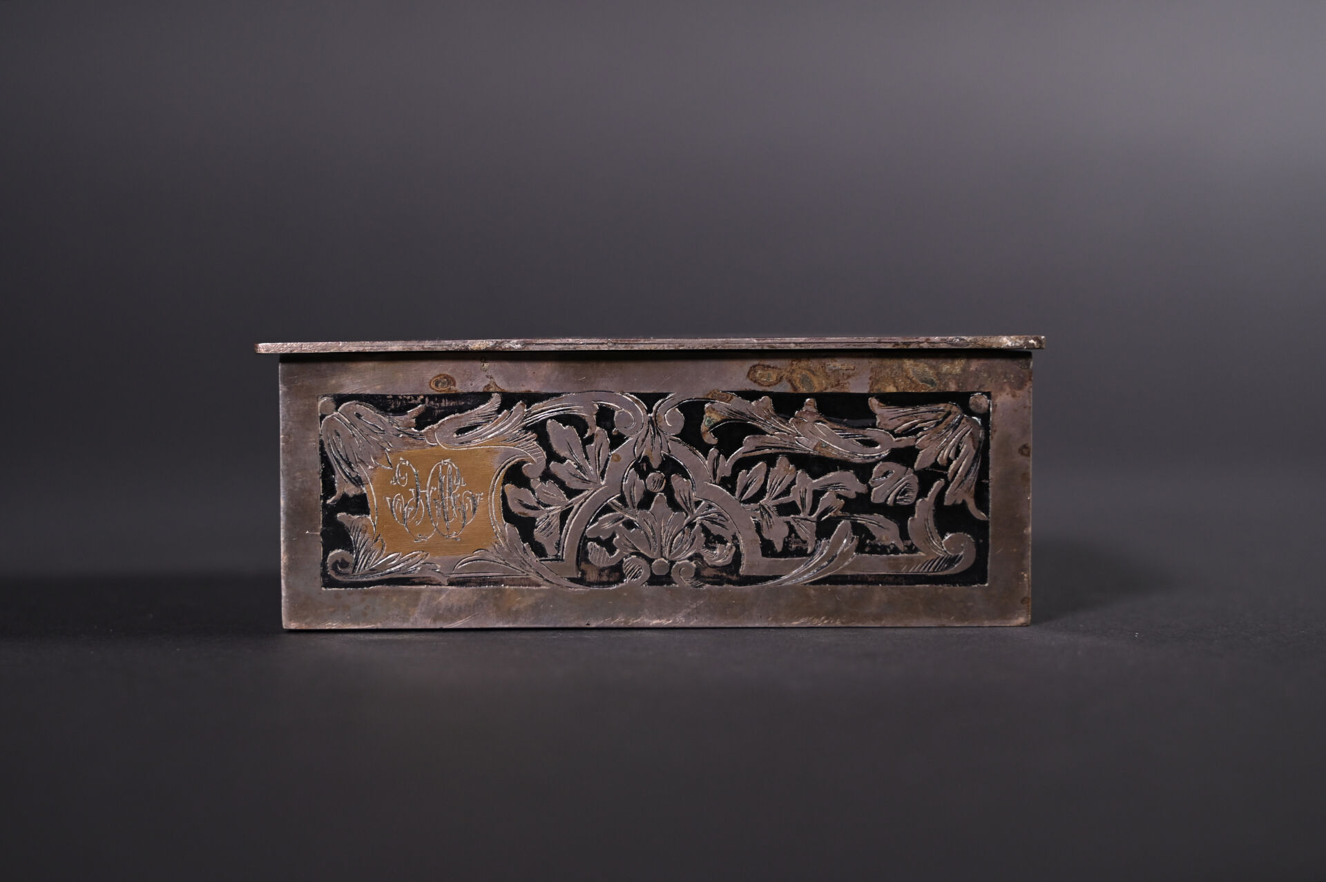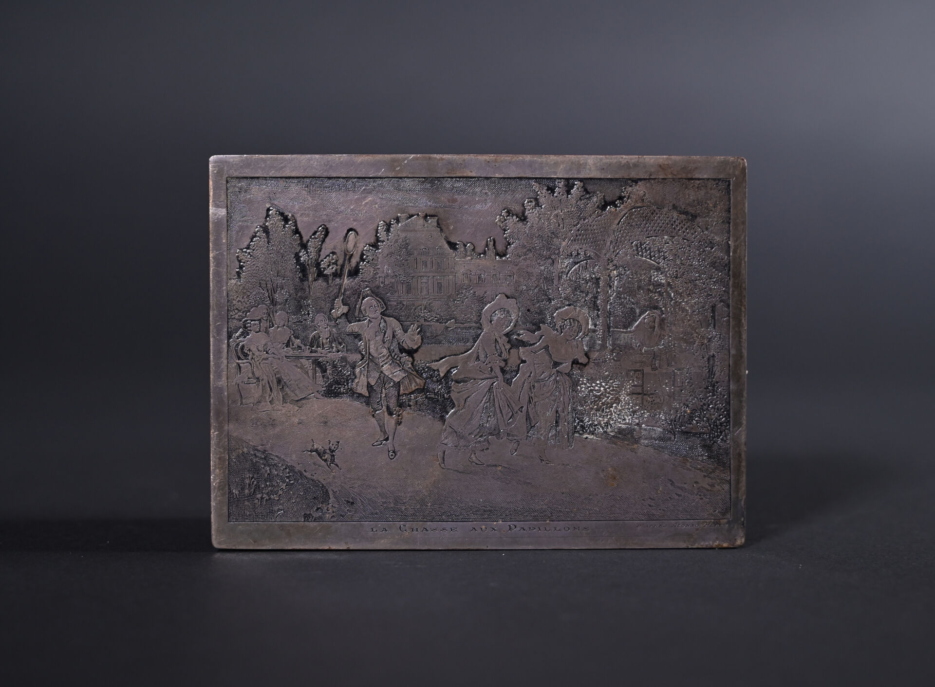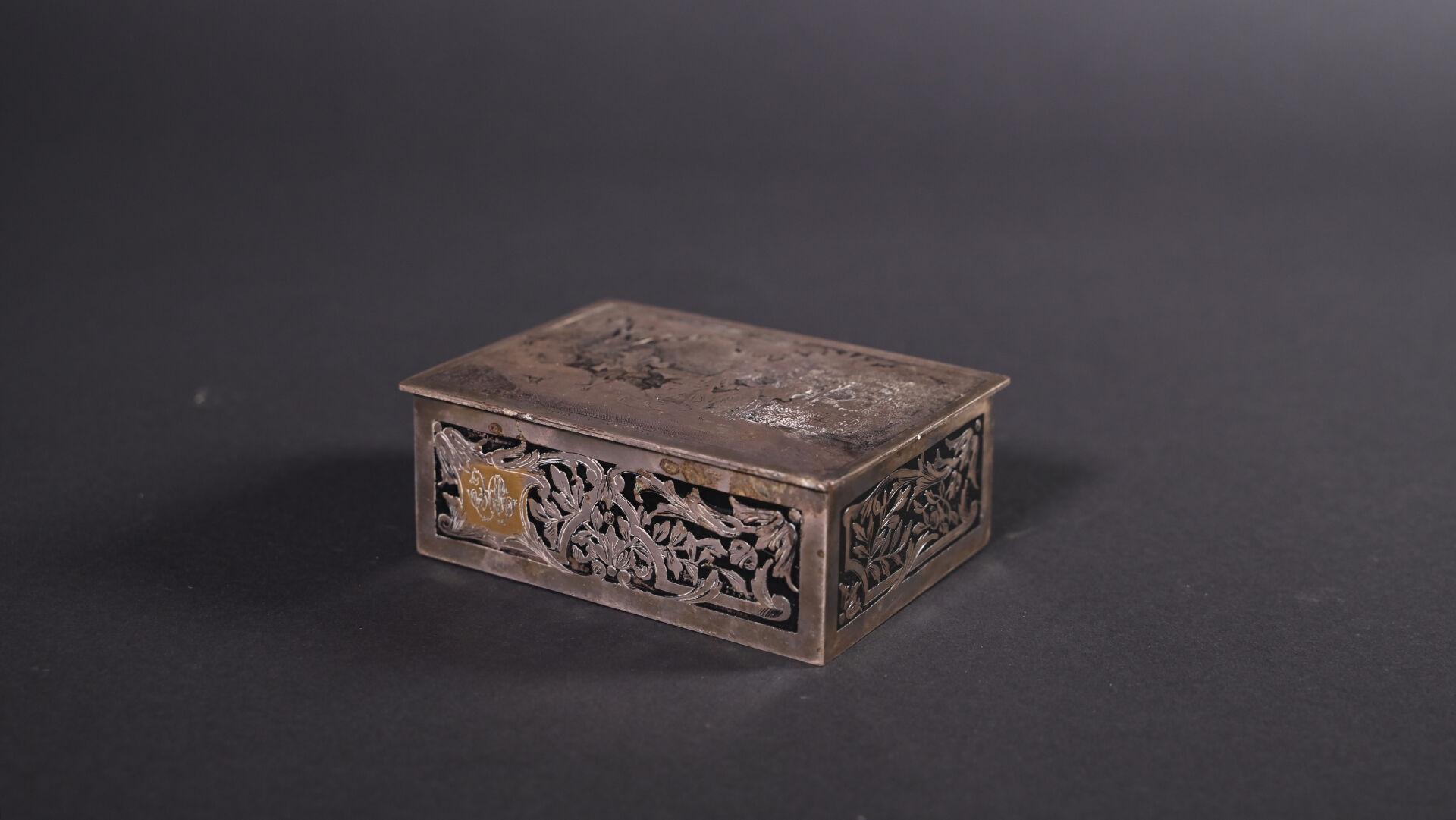Deux coffrets en métal argenté, l’un à décor en bas relief de scènes galantes, l’autre à décor gravé (quelques usures). Haut. : 8,5 m et 5 cm. Fin du XIXe siècle.