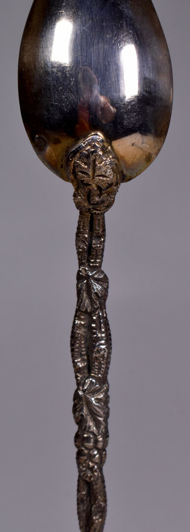 Deux cuillères à verre d’eau en argent 925/1000e. Poids. : 37 g. On joint un flacon à sels à monture en métal aux armoiries d’ALger (déformations).