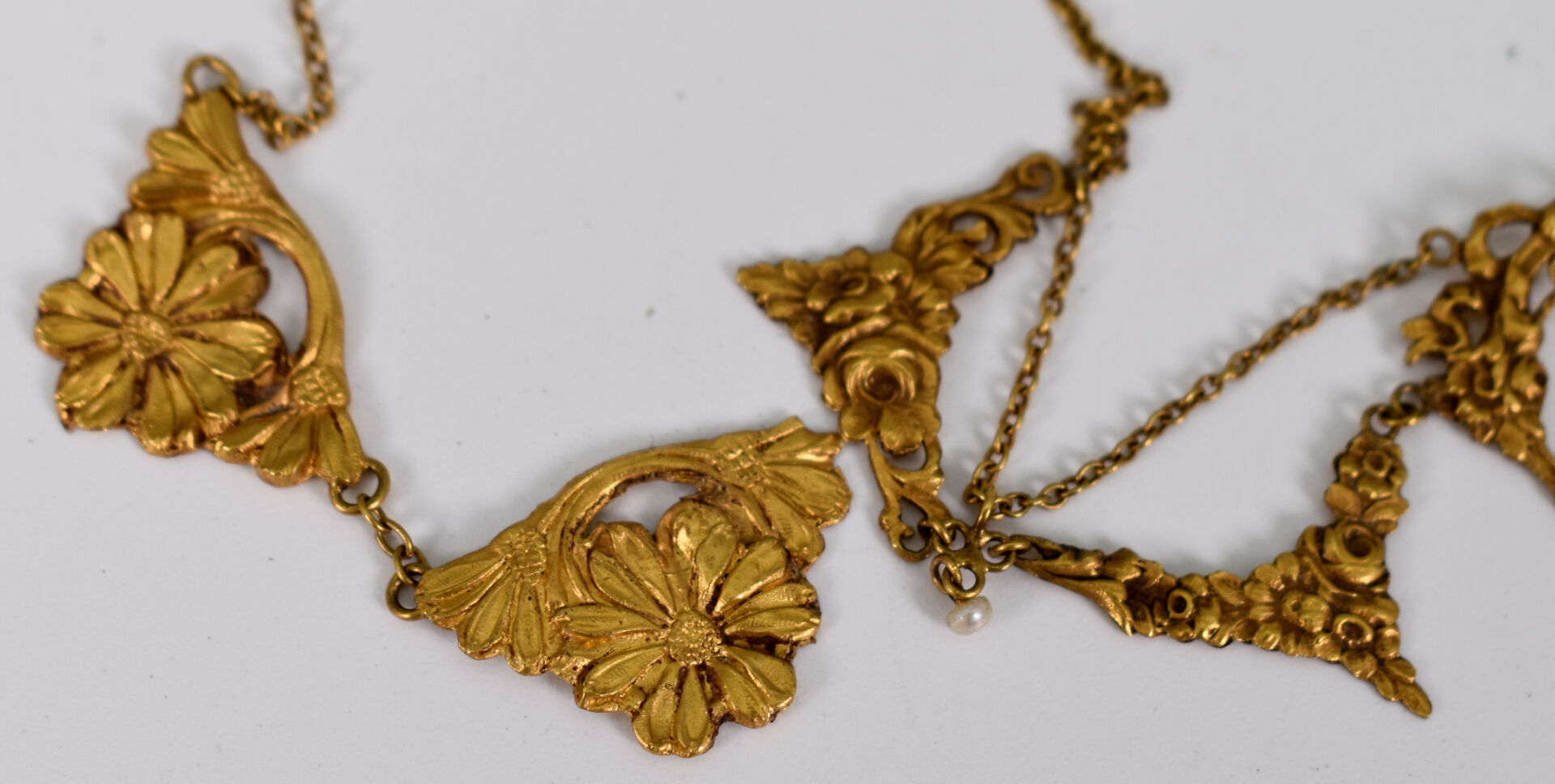 Deux débris de colliers en or jaune 18K 750/1000e orné de perlettes. Poids brut total : 8,15 g.