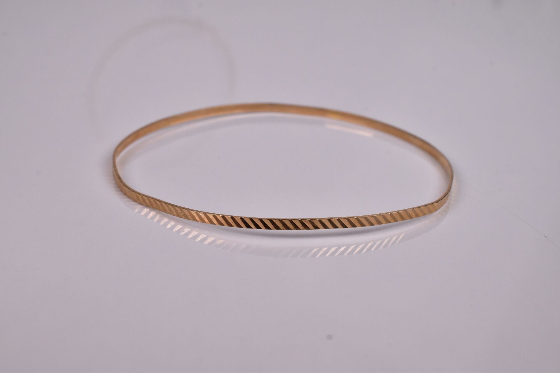 Deux joncs en or jaune 18K 750/1000e (chocs). DIam. : 6,5 cm et 6 cm. Poids de l’ensemble 9,8 g.