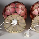 Deux lampes à poser en laiton à motifs de coquillages et vessie (restaurations, un élément à refixer). Haut. : 28 cm.