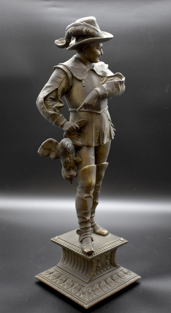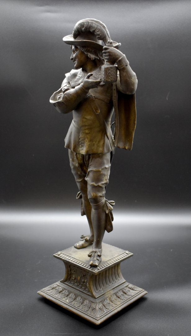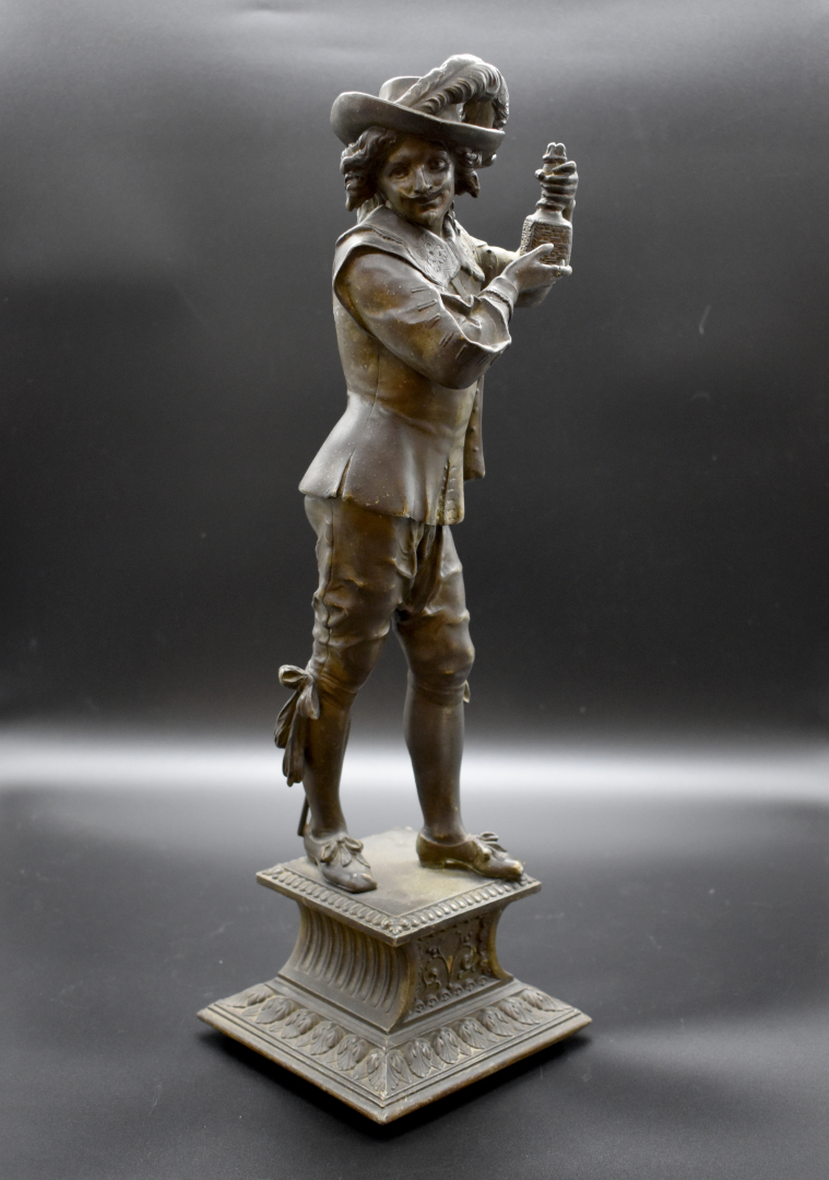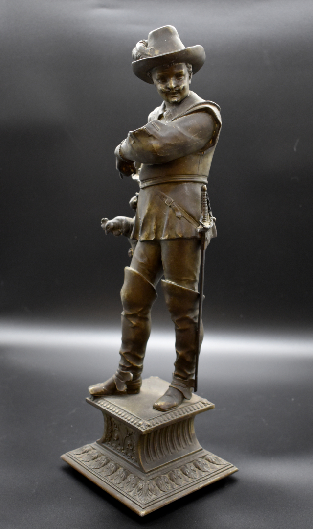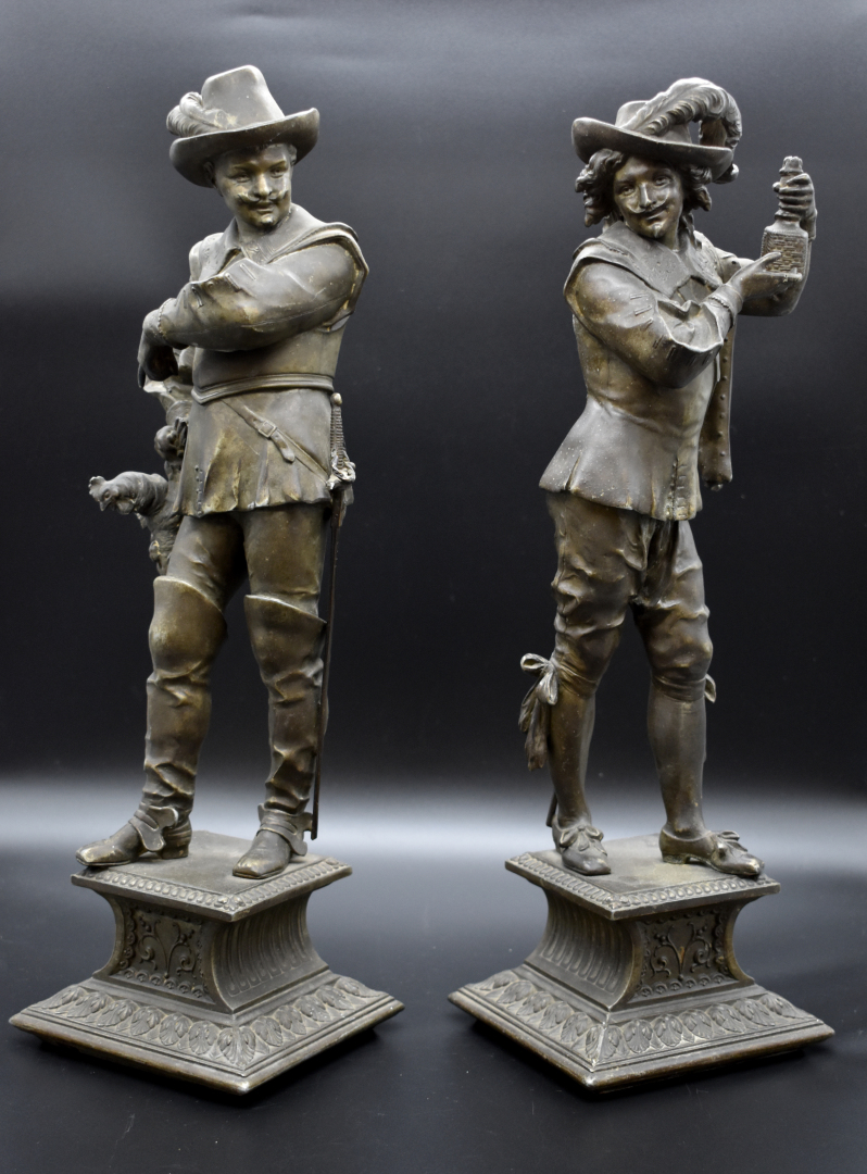 Deux mousquetaires en régule patiné brun (petits accidents). Fin du XIXe siècle. Haut. : 45,5 cm.