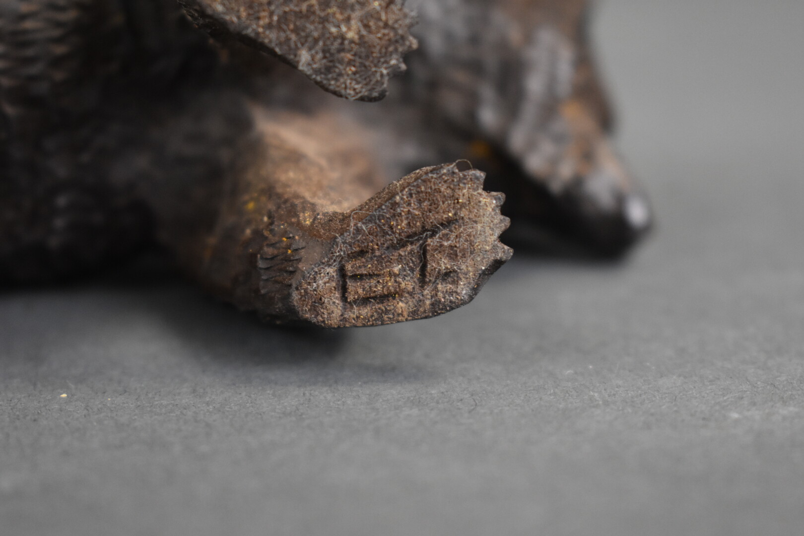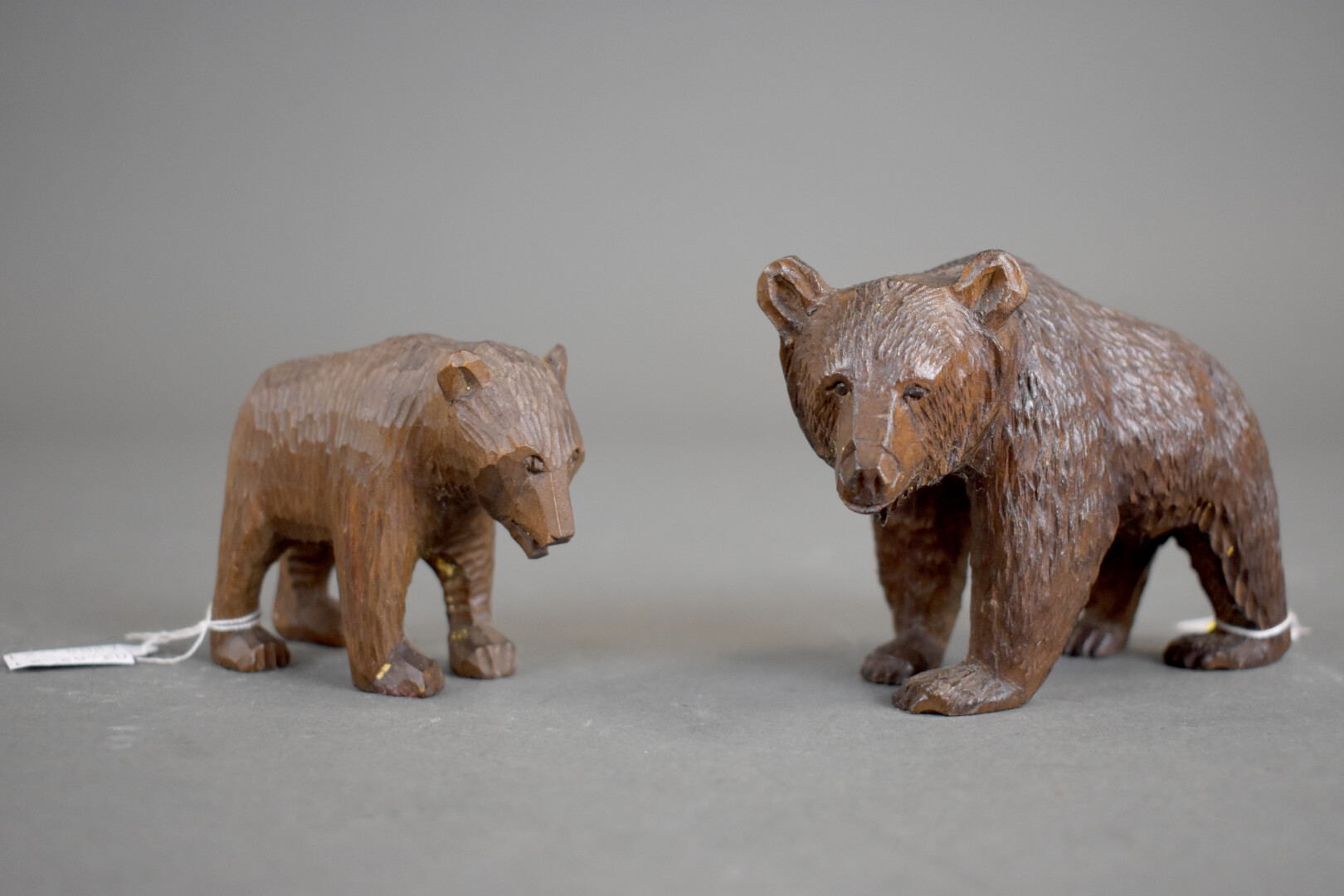 Deux ours miniature en bois sculpté. Travail probablement de la forêt noire, XXe siècle.Haut. : 7 cm et 5,5 cm.