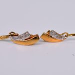 Deux paires de boucles d’oreille en or 18K 750/1000e petits diamants et saphirs. Poids brut total : 2,8 g.