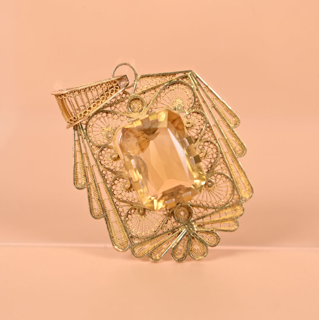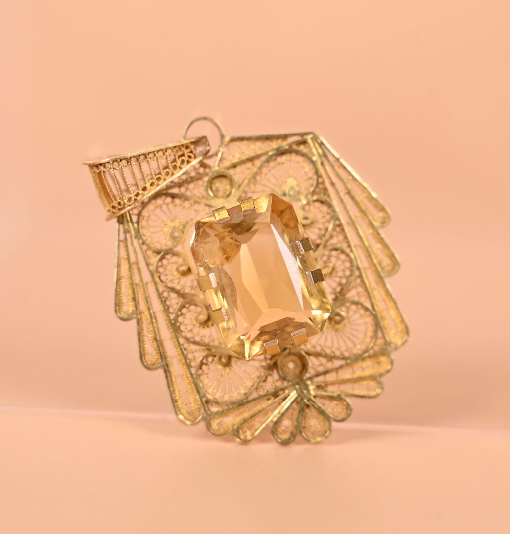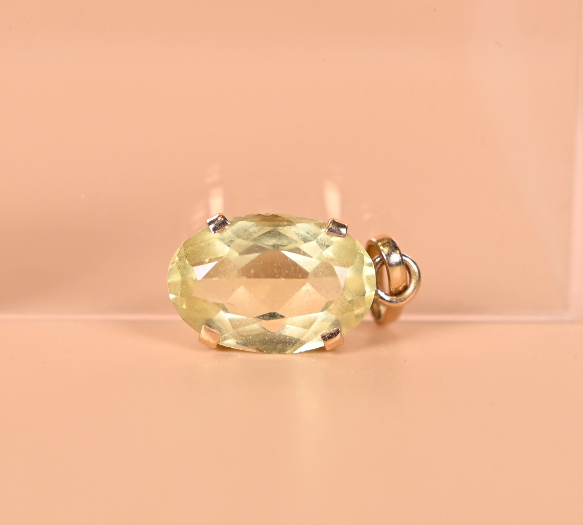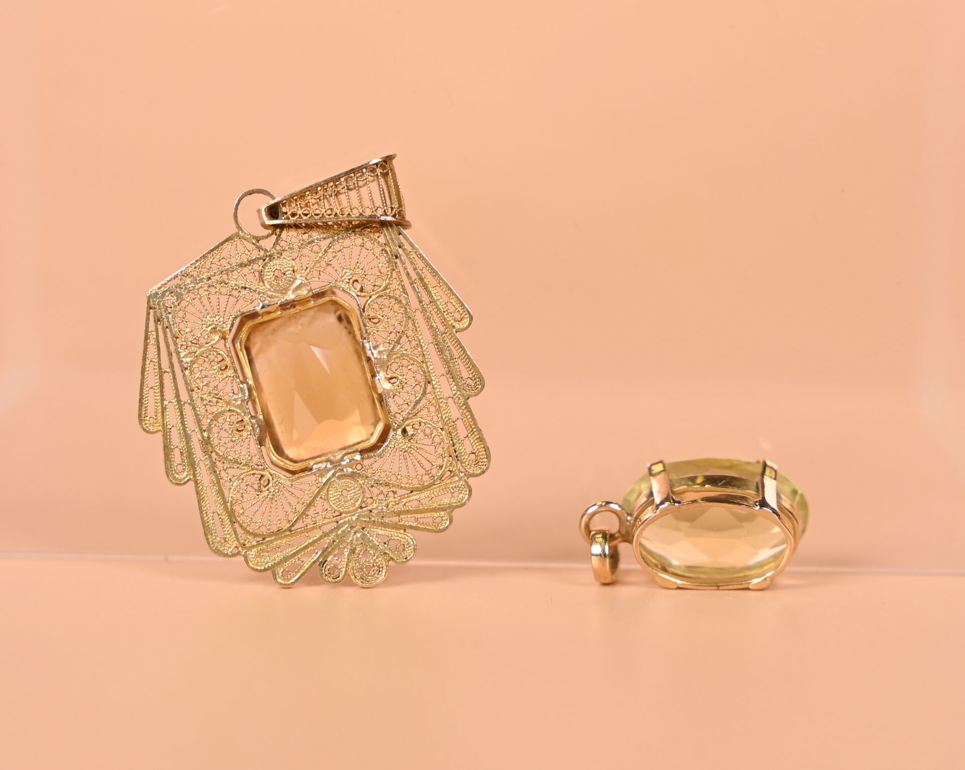 Deux pendentifs en or 18K 750/1000e et pierres fines dont une citrine. Poids brut : 9,6 g.