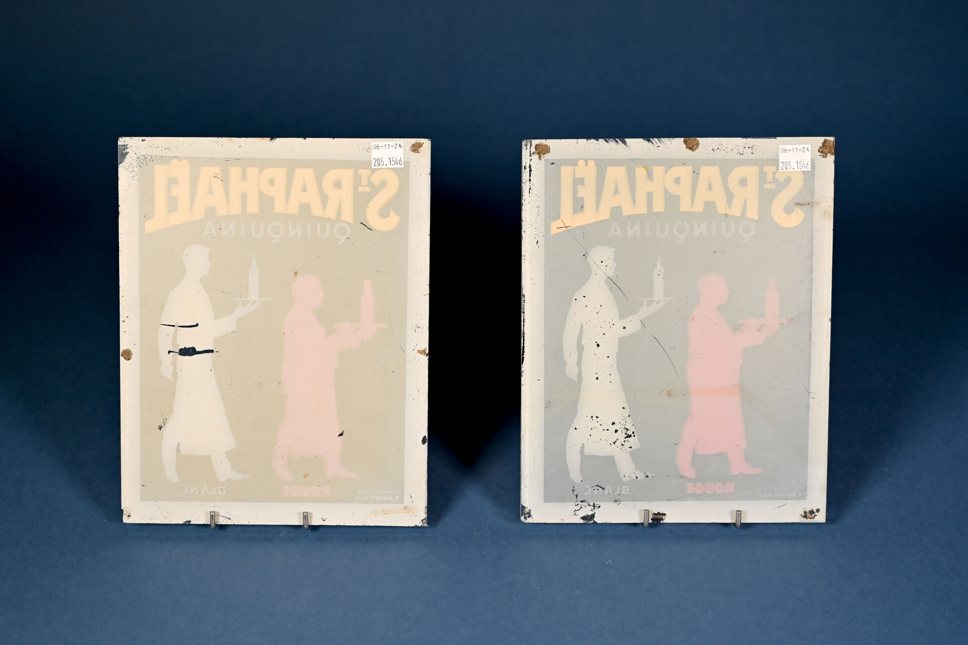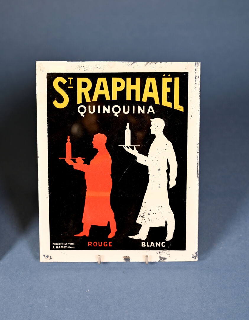 Deux plaques publicitaires en verre ST RAPHAËL Quinquina (manques). 25 x 20 cm.