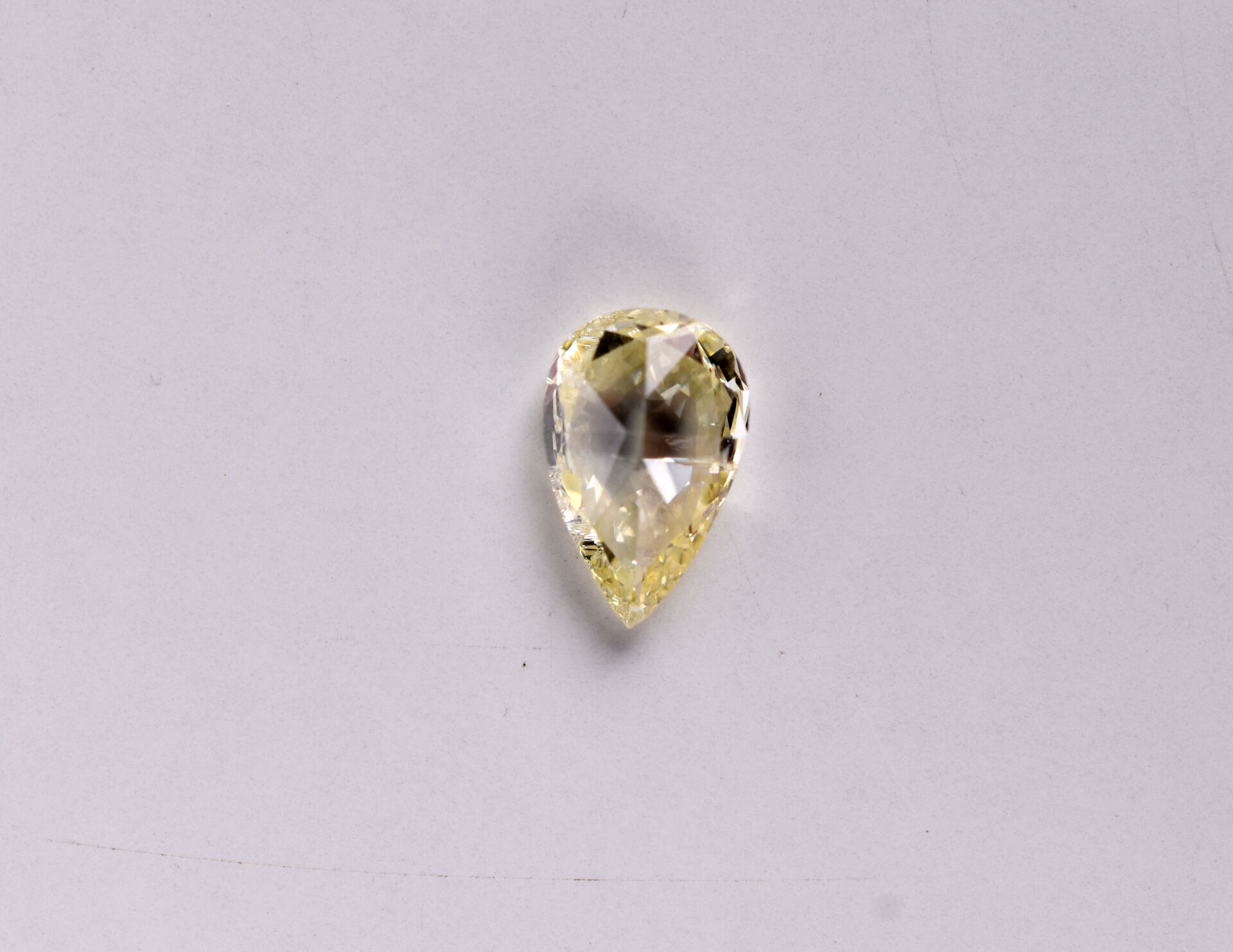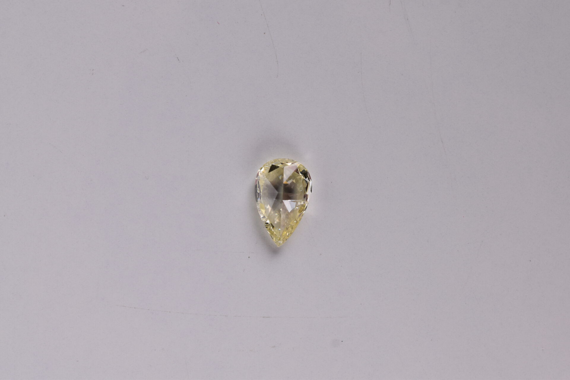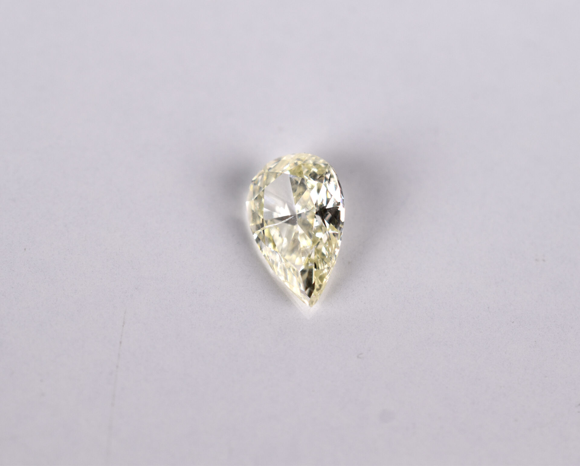 Diamant sur papier d’environ 0,87 carat de forme poire de taille brillant couleur estimée W/X, pureté estimée SI3, fluorescence forte. Dimensions : 8,99 – 5,71 x 2,88 mm env.