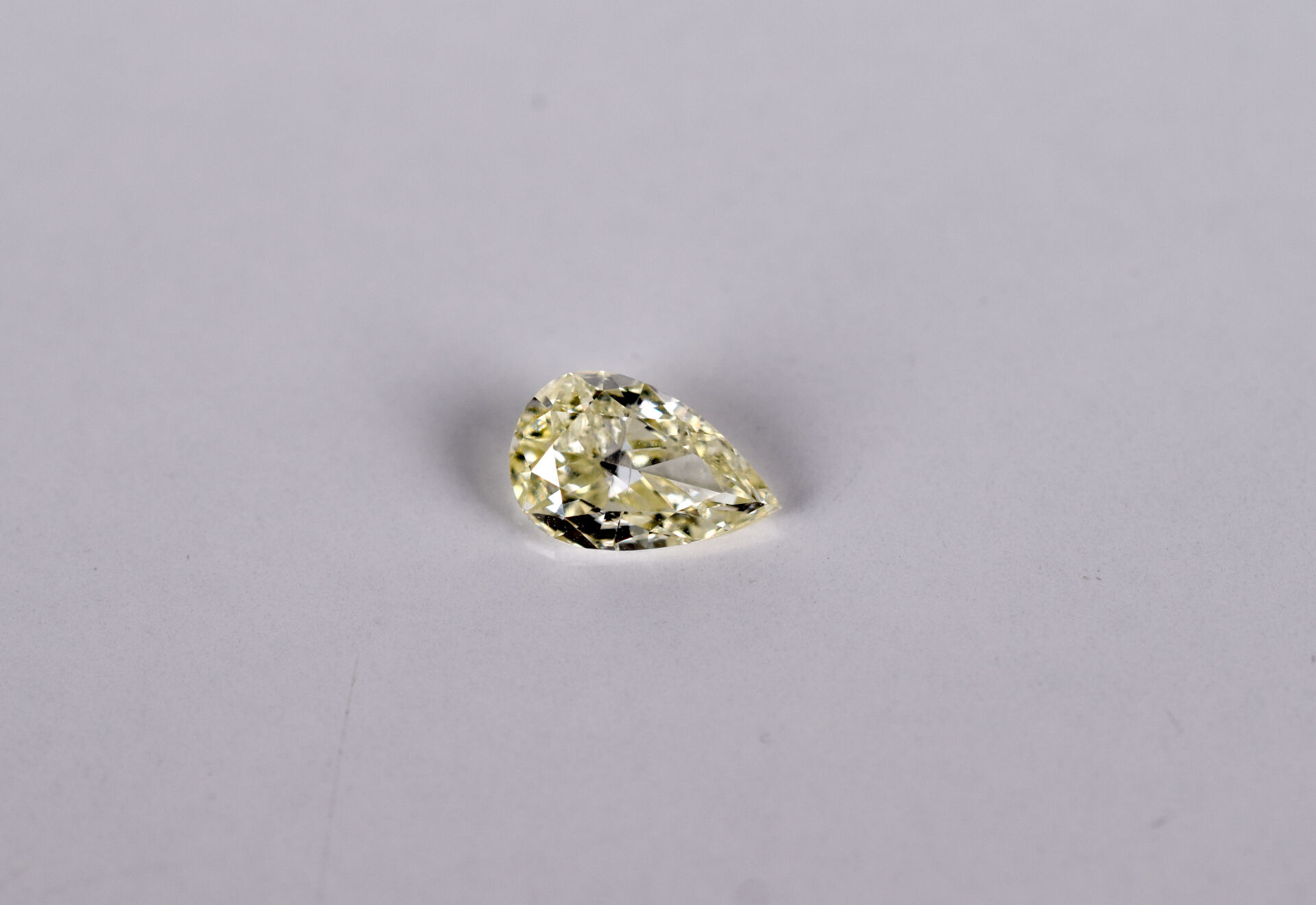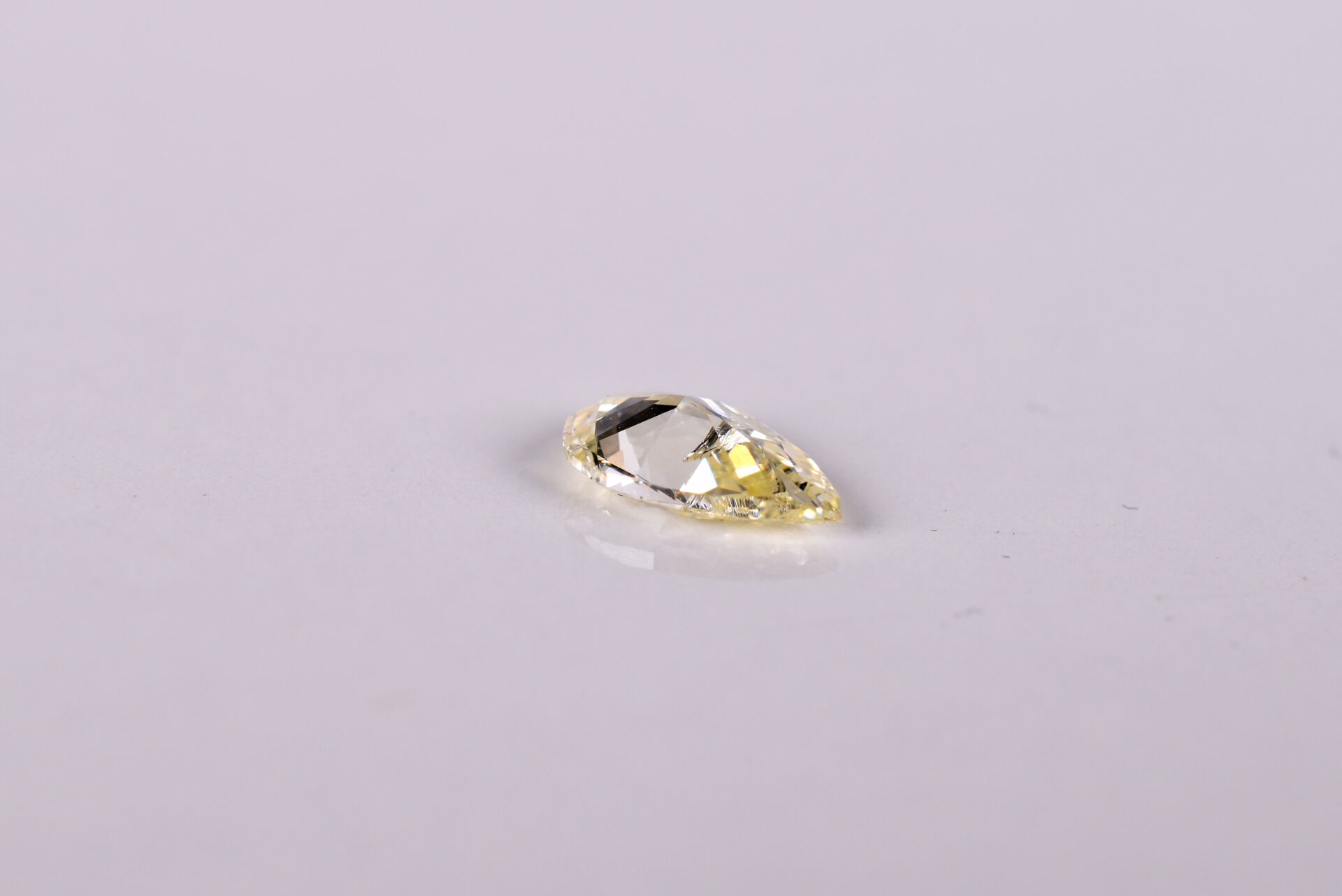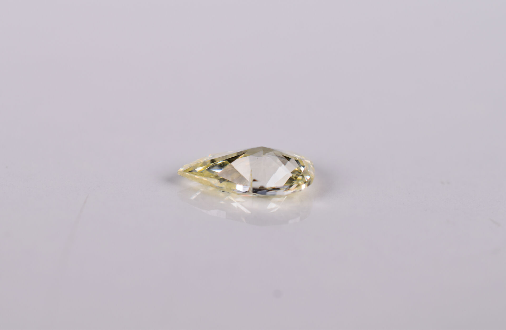 Diamant sur papier d’environ 0,87 carat de forme poire de taille brillant couleur estimée W/X, pureté estimée SI3, fluorescence forte. Dimensions : 8,99 – 5,71 x 2,88 mm env.