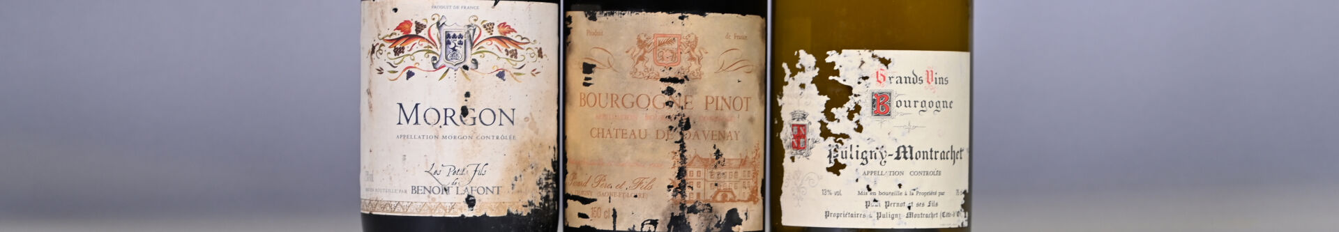 1 magnum, Morgon, Les Petits Fils de Benoit Lafont, 2004. Collerette légèrement sale. Etiquette sale et abimée.