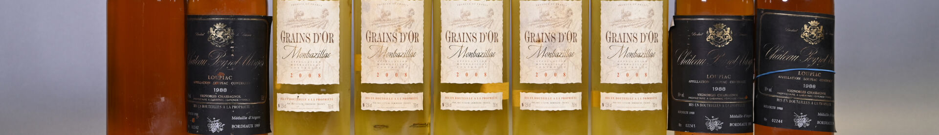 5 bouteilles, Monbazillac, Grains d’Or, 2008. En l’état.