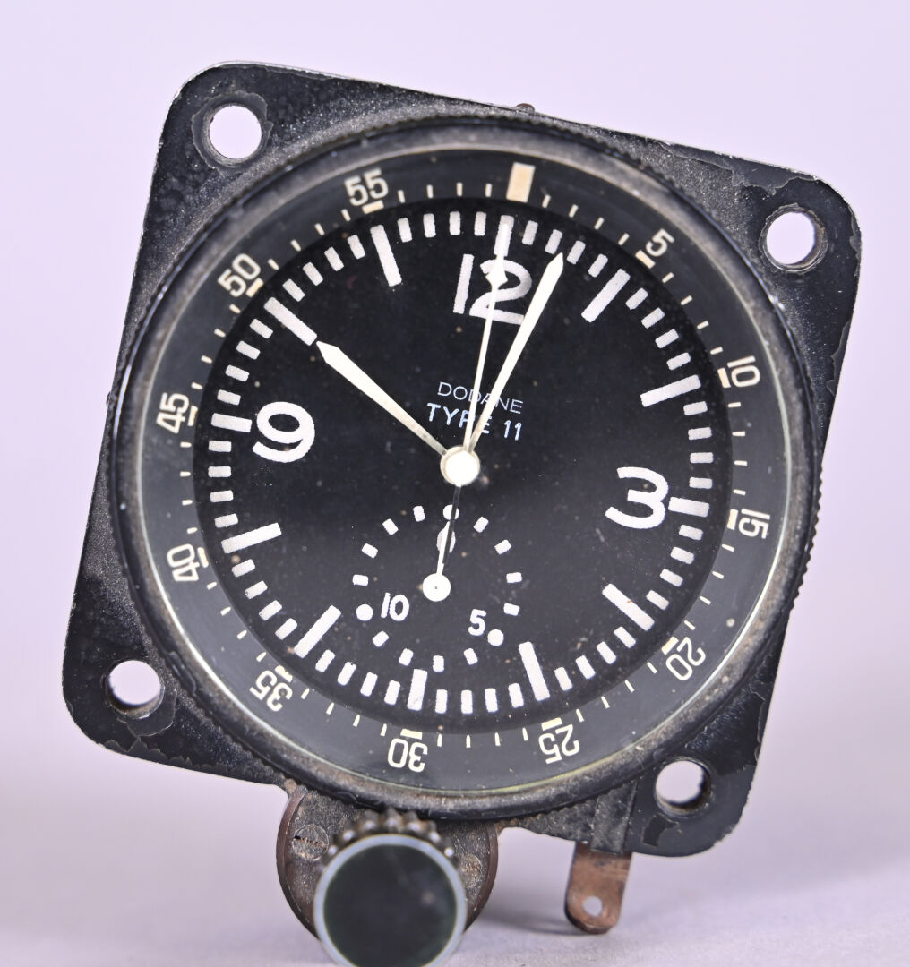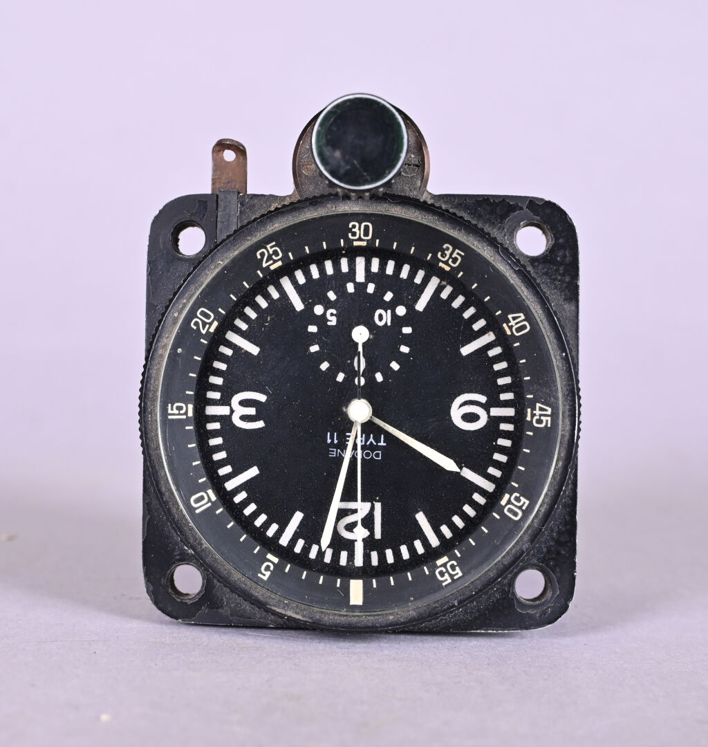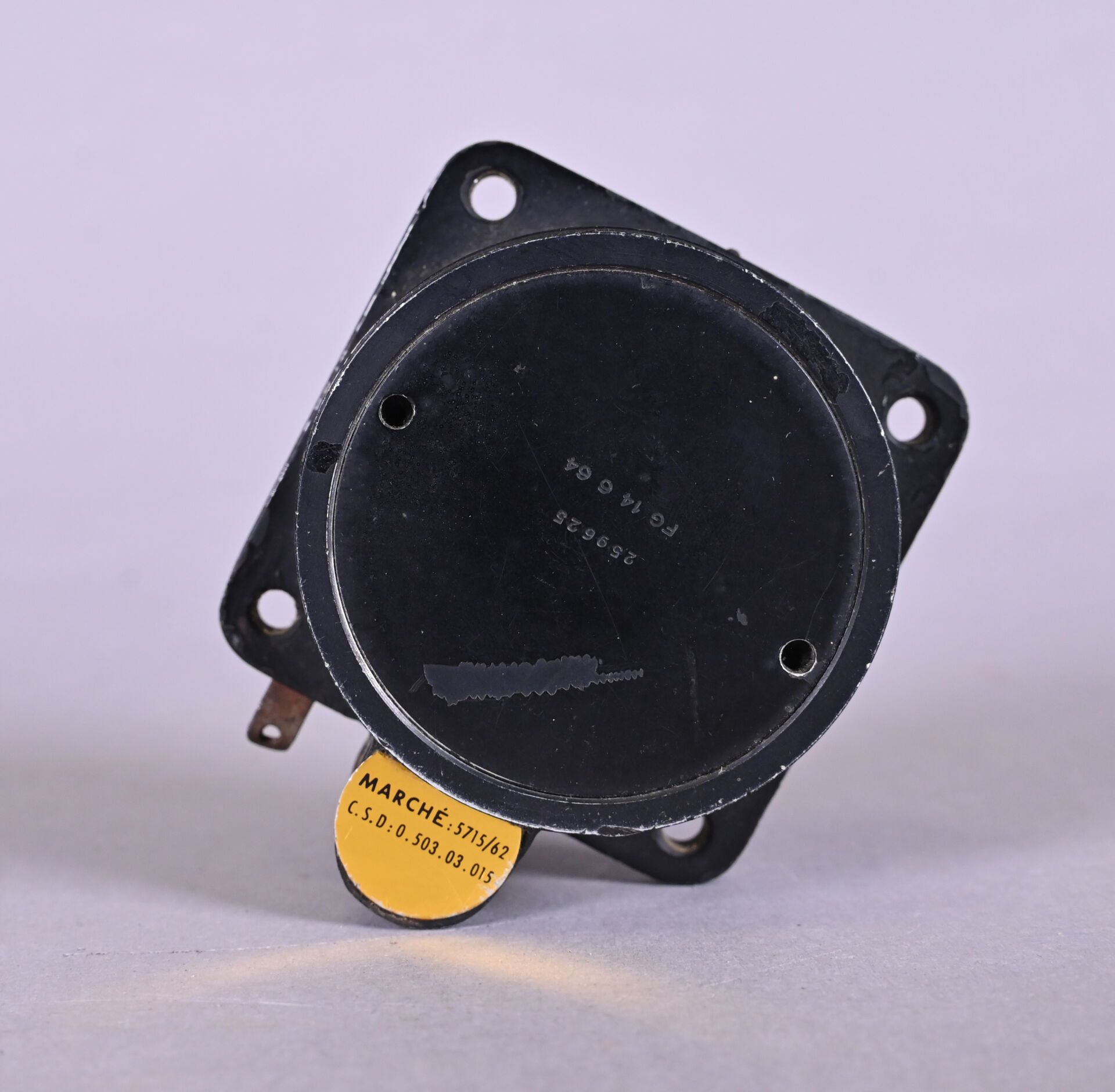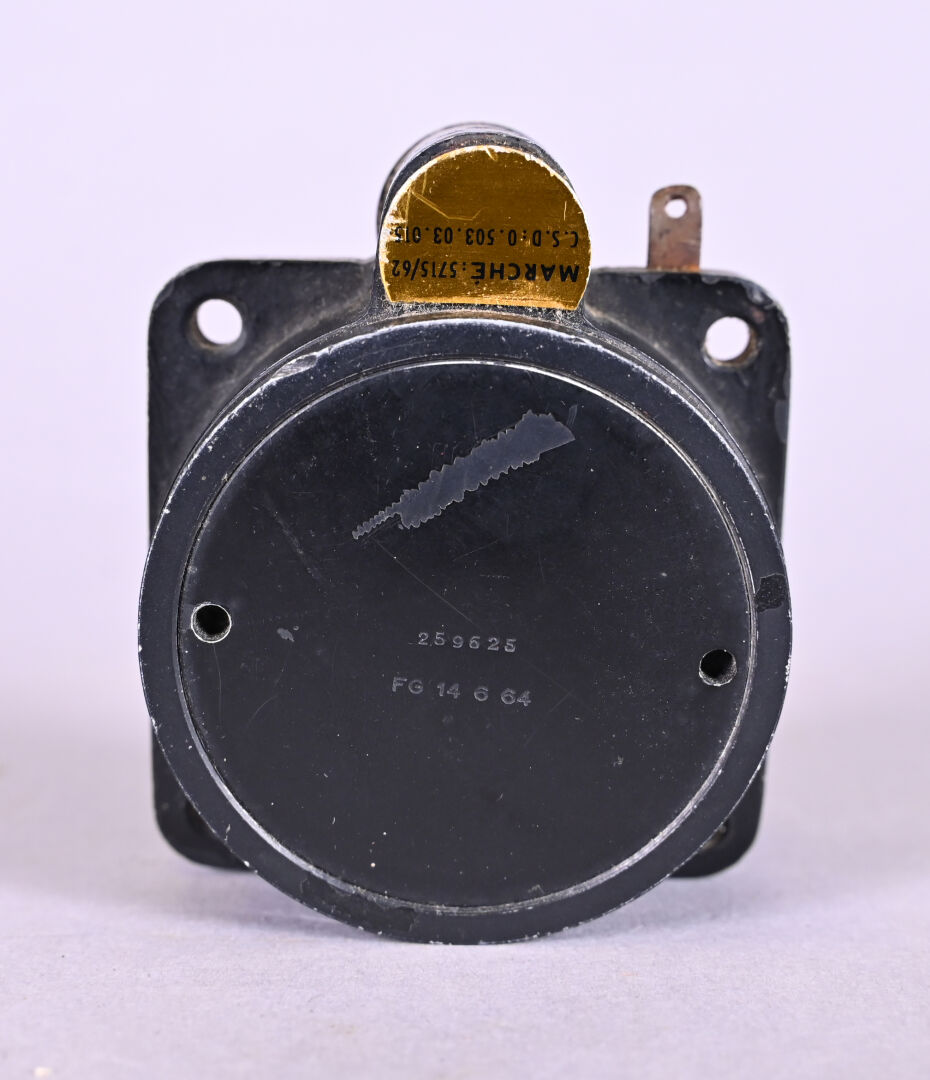 DODANE. Compteur de bord type 11. Chronographe de tableau de bord (quelques usures et rayures, manquent les vis d’attache et un petit écrou. Boitier en acier noir. Démarre. Au dos, plaque « Marché 5715/62 C.S.D : 0.503.03.015.