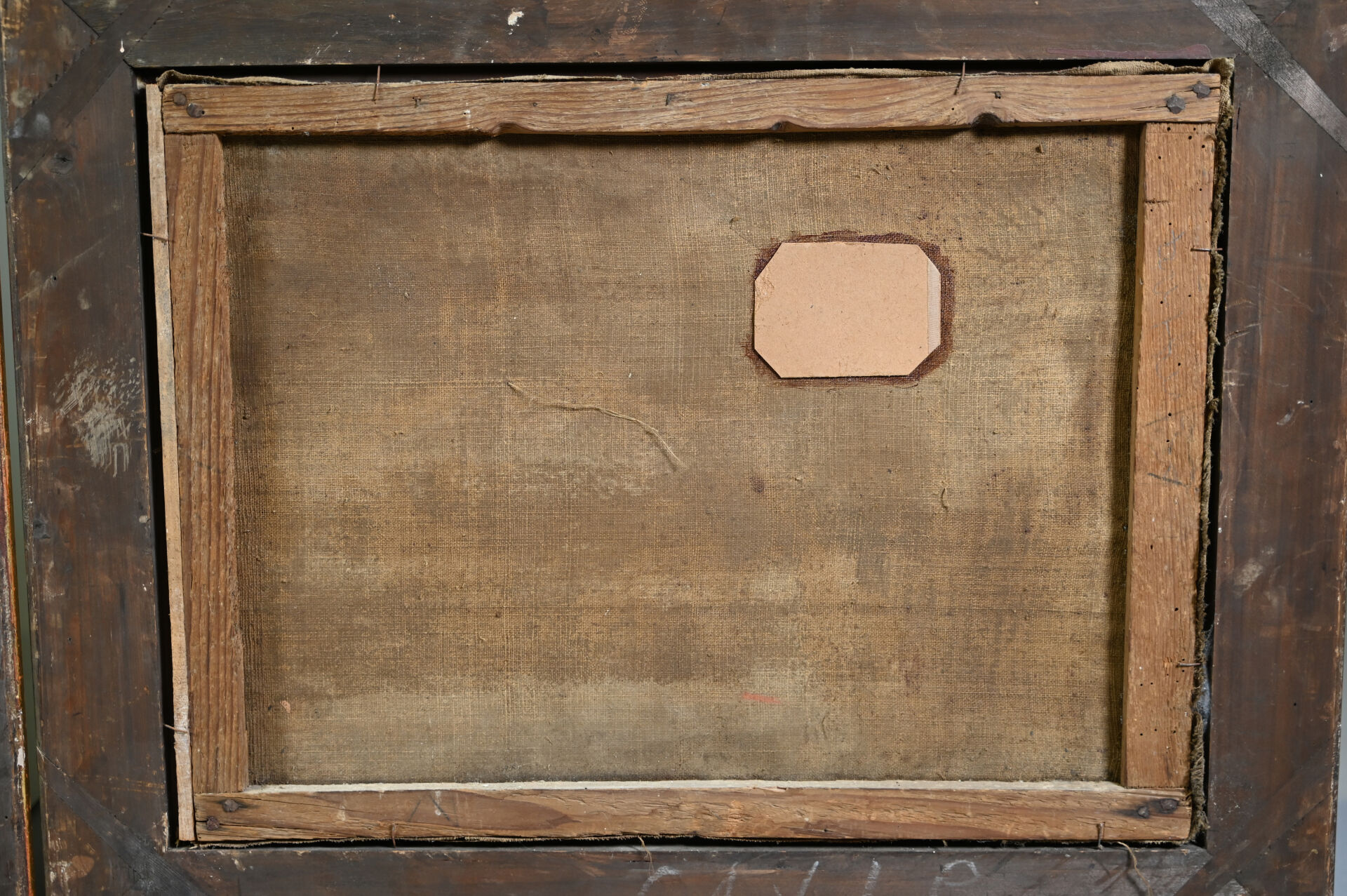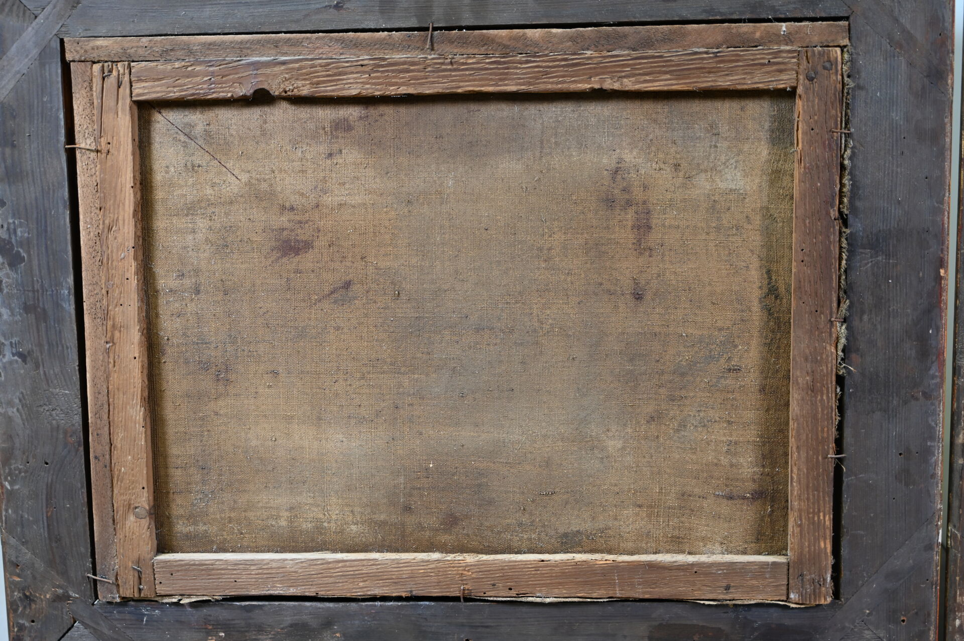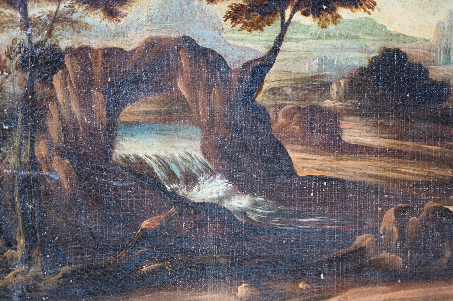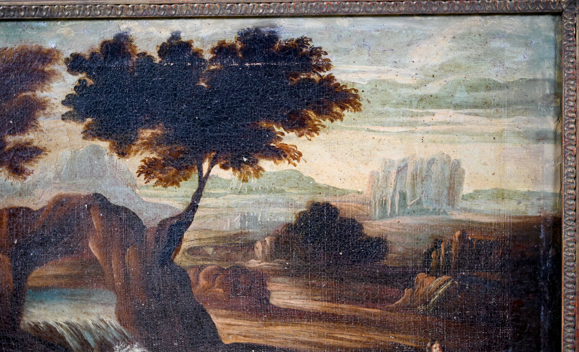 École de la fin du début du XIXème siècle. Rome, vers 1800. Paysage animé d’une figure de Saint-Jean et de la Vierge et Sainte Anne. Deux huiles sur toile. 44,5 x 60 cm.