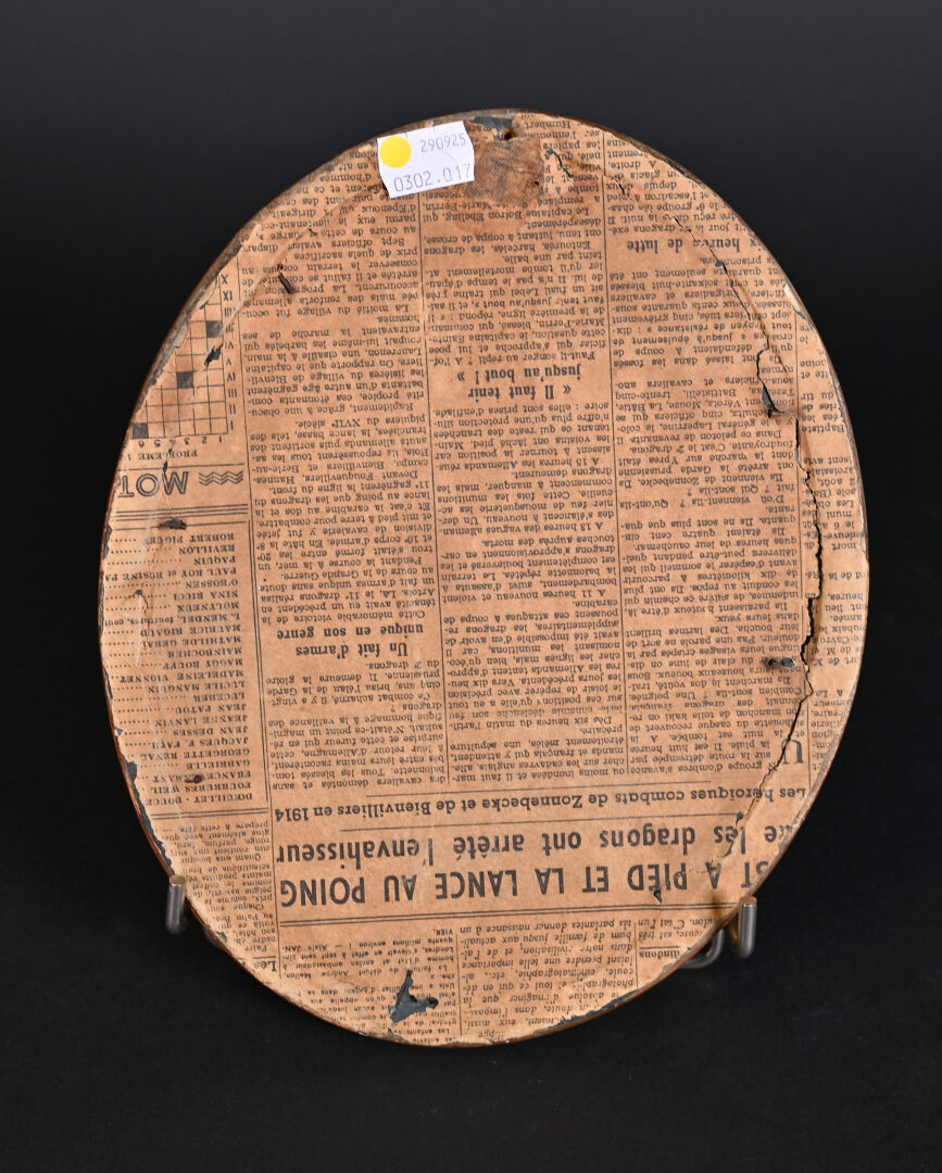 Dessin à vue ovale au crayon, craie et pastel (mouillures, papier jauni).