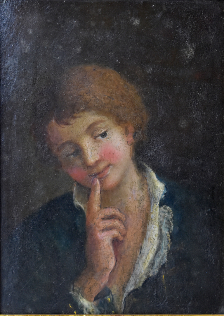 École de la fin du XVIIIe ou du début du XIXe siècle. Le signe de la main. Huile sur panneau. 22,5 x 16 cm.