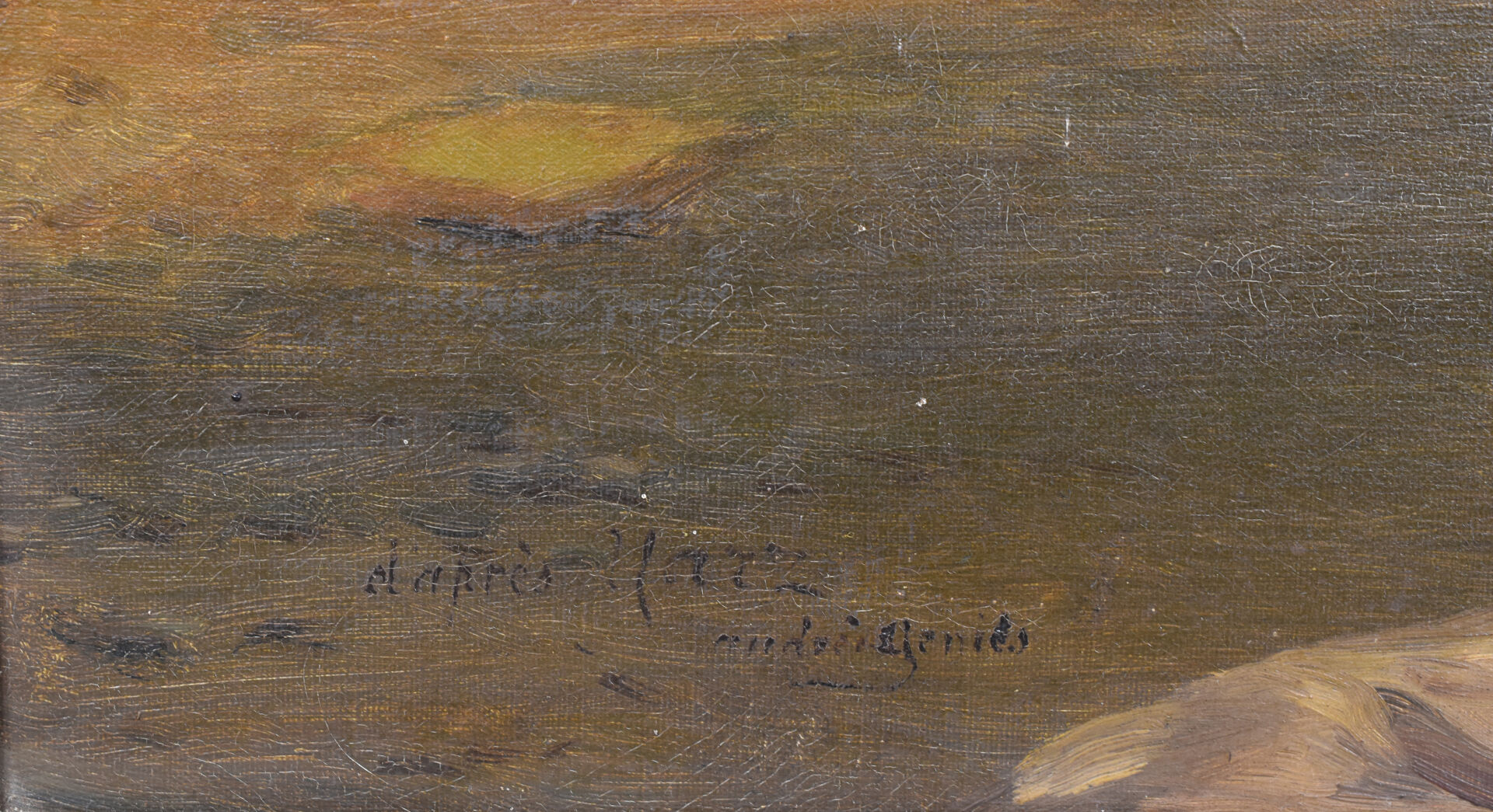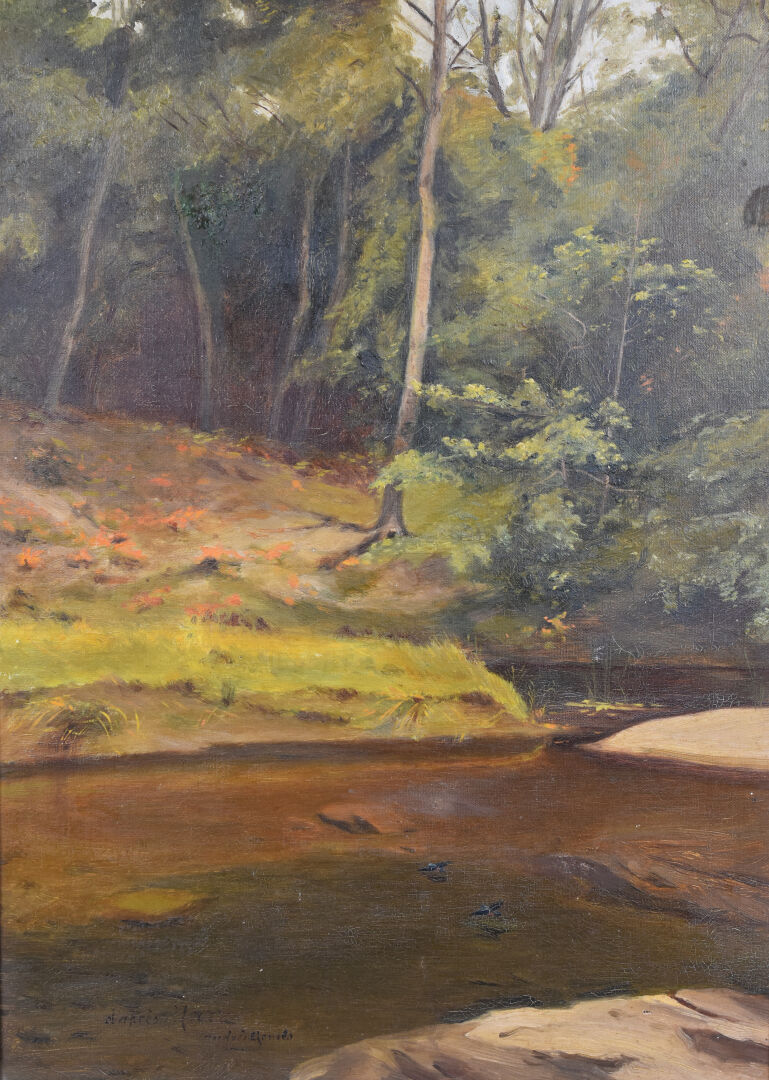 Ecole du début du XXe siècle (André GENIES) Rivière en sous-bois. Huile sur toile signée en bas à gauche. 61 x 46 cm.
