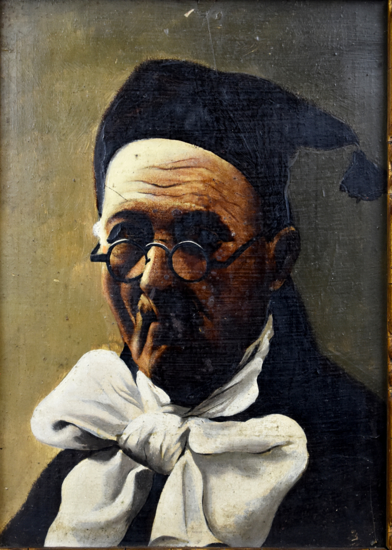 Ecole du début du XXe siècle. Le bonnet de nuit. Huile sur panneau de chêne. 22 x 15,5 cm.
