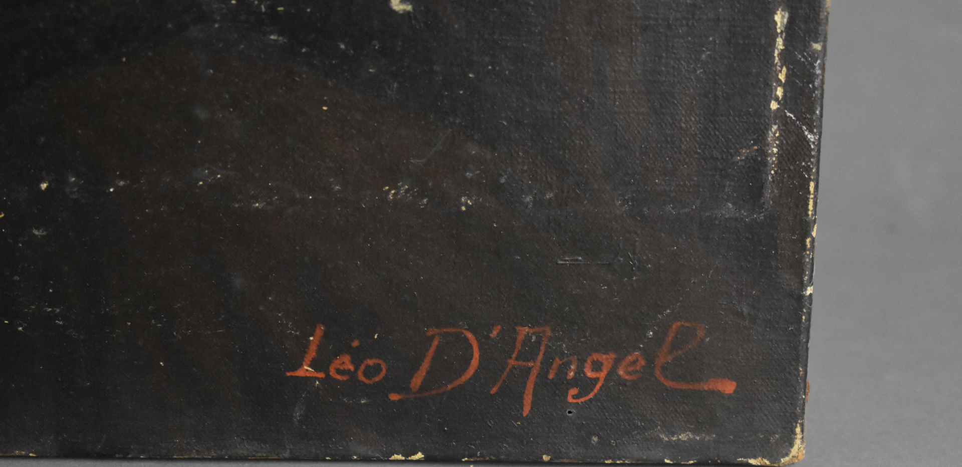 Huile sur toile signée Léo D’Angel en bas à droite (manques).