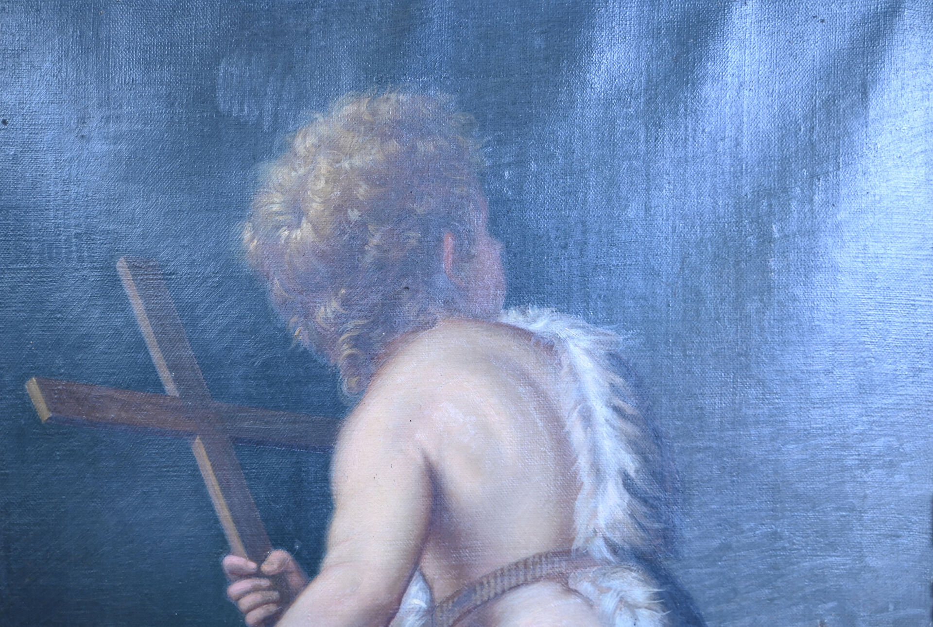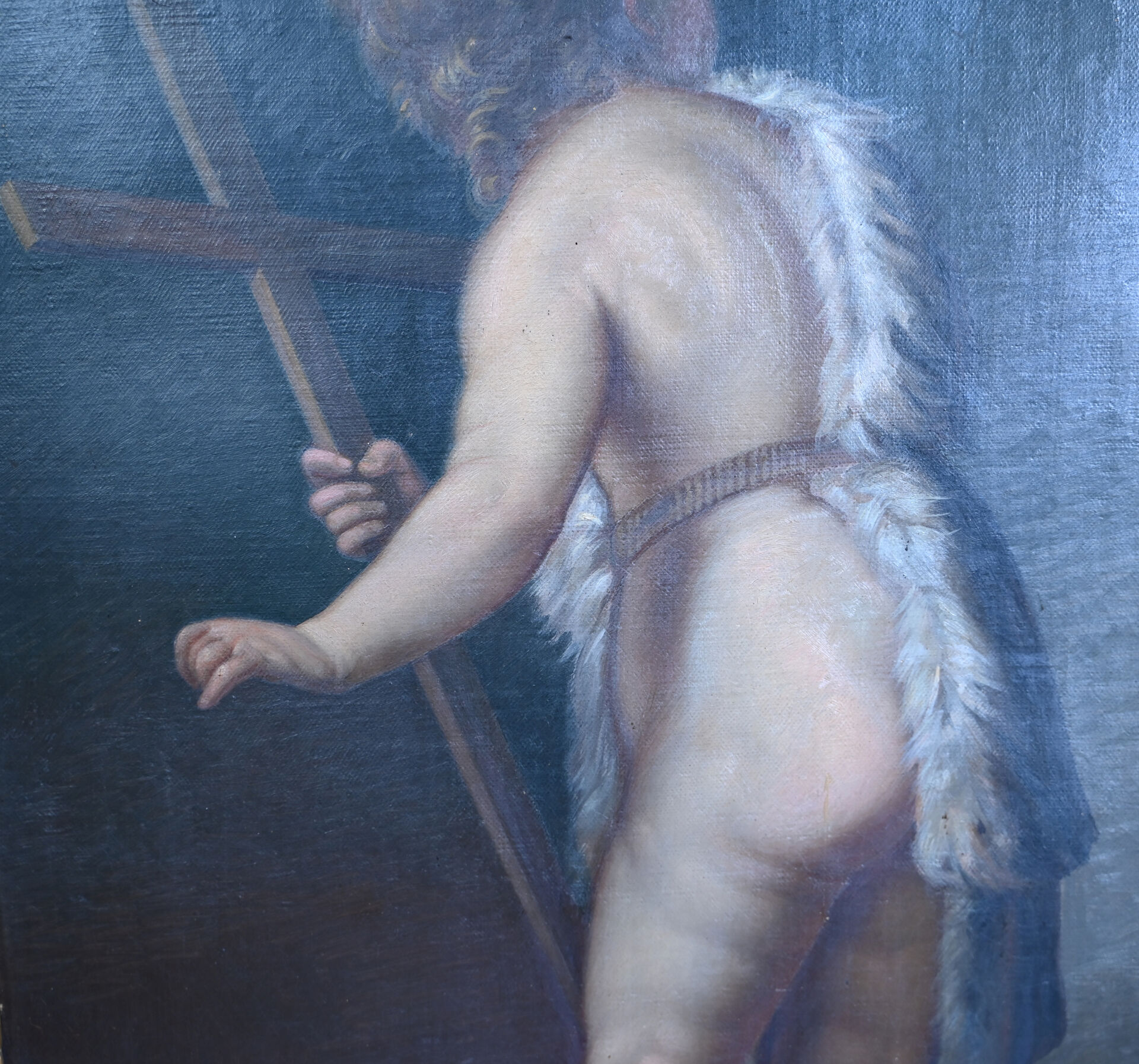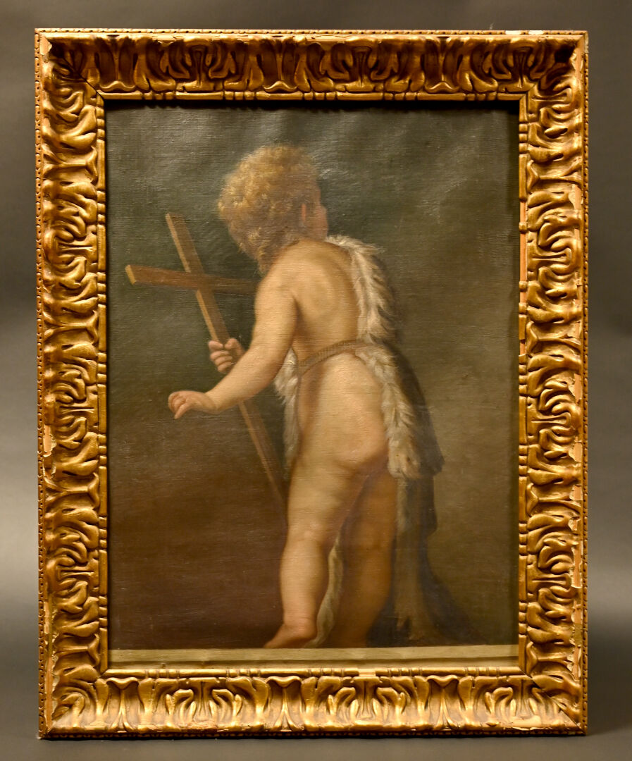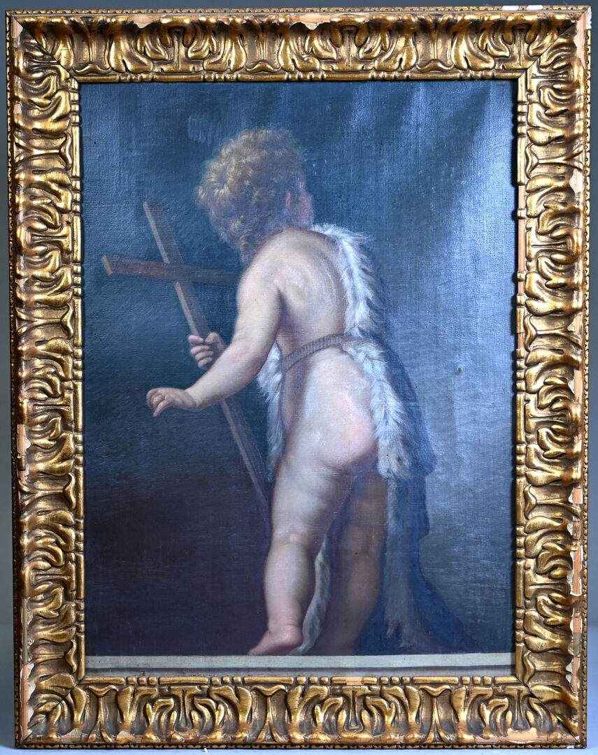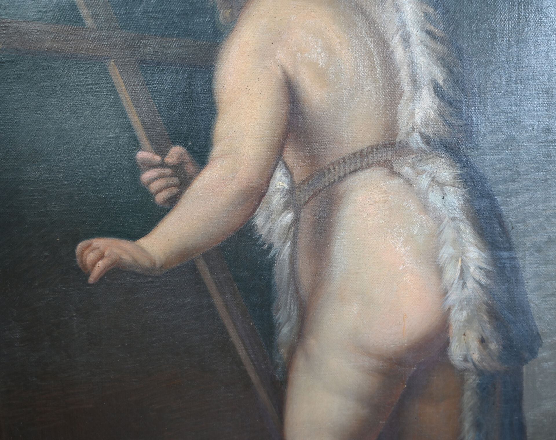 École du XIXe siècle, d’après une École du XVIe siècle. Saint Jean-Baptiste vu de dos. Huile sur toile. 76 x 56 cm.