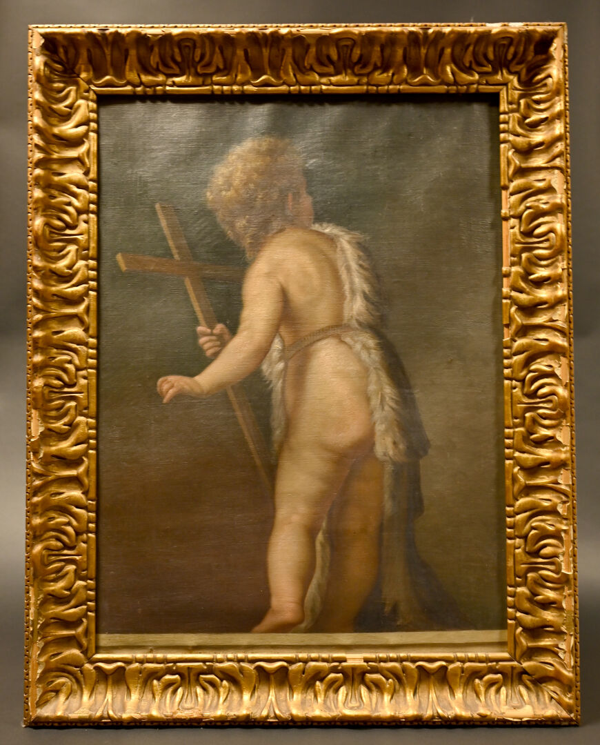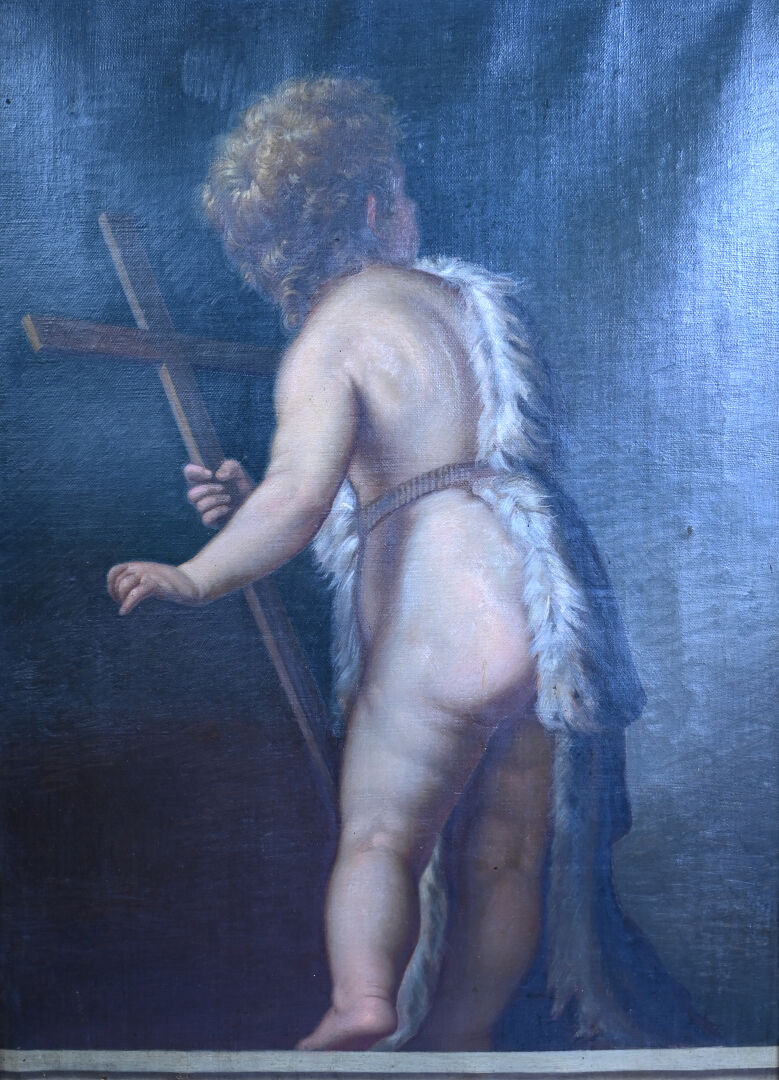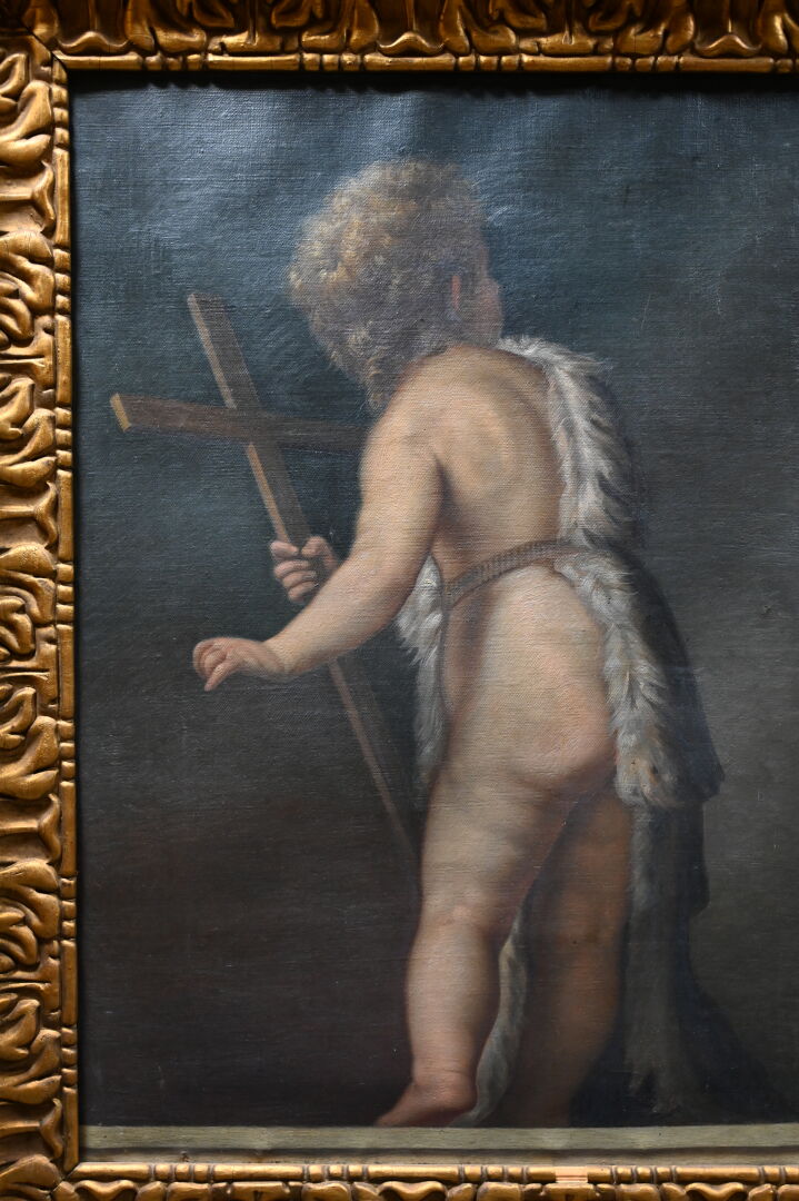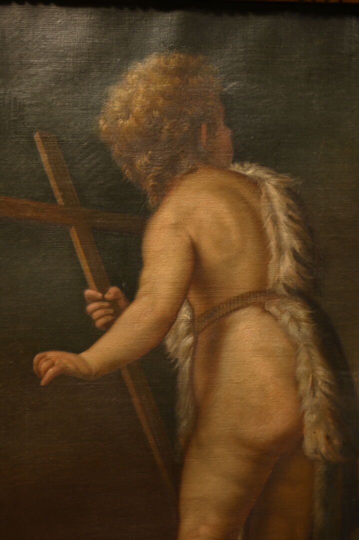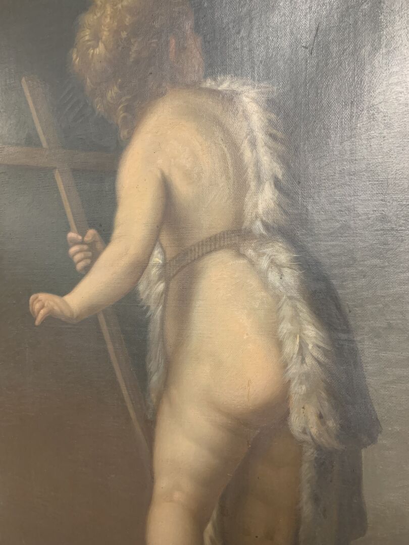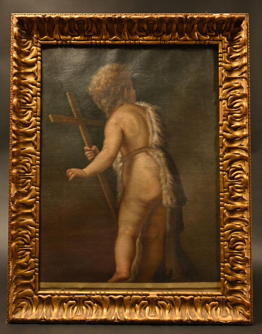 École du XIXe siècle, d’après une École du XVIe siècle. Saint Jean-Baptiste vu de dos. Huile sur toile. 76 x 56 cm.