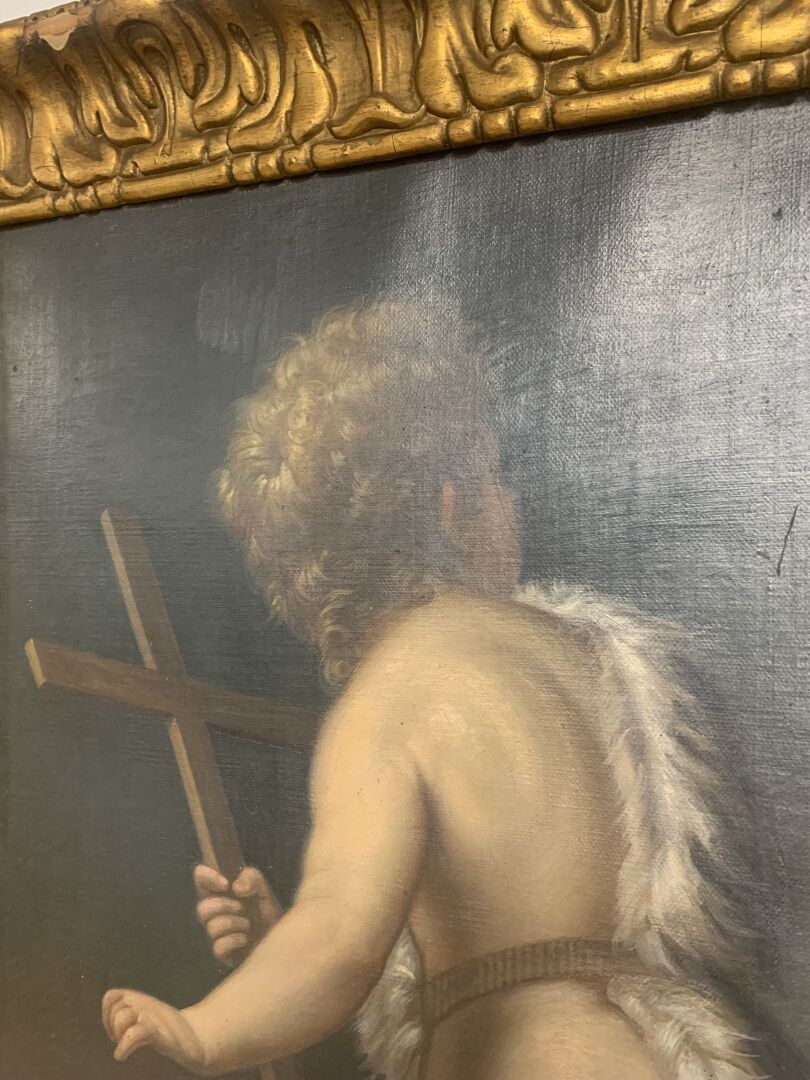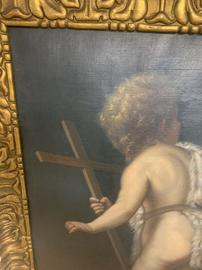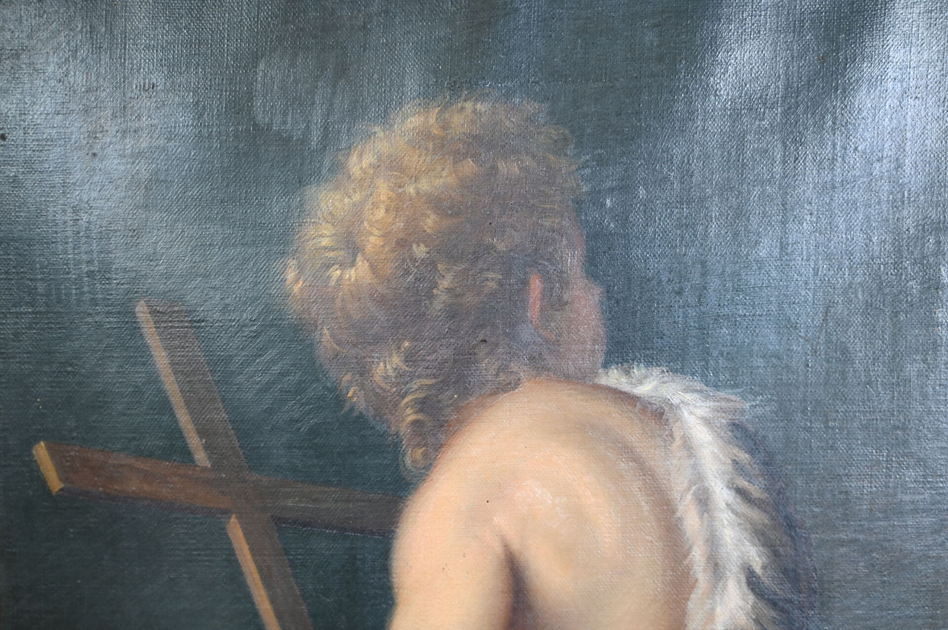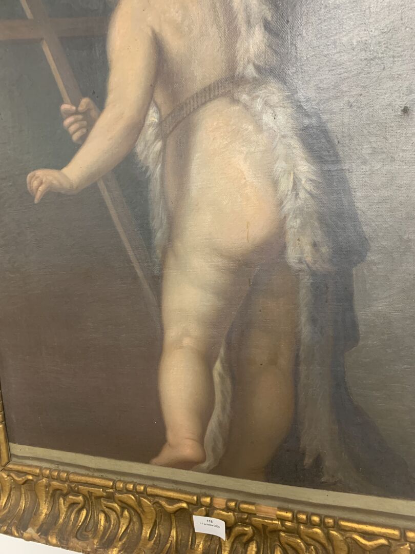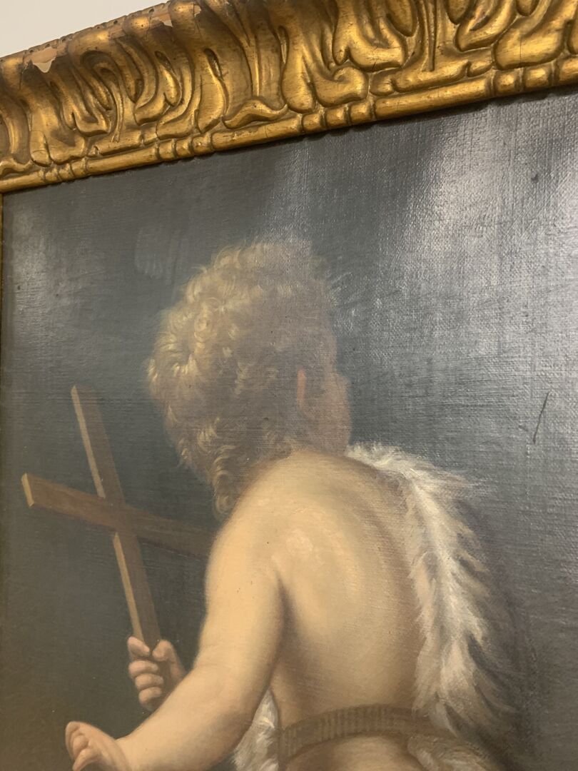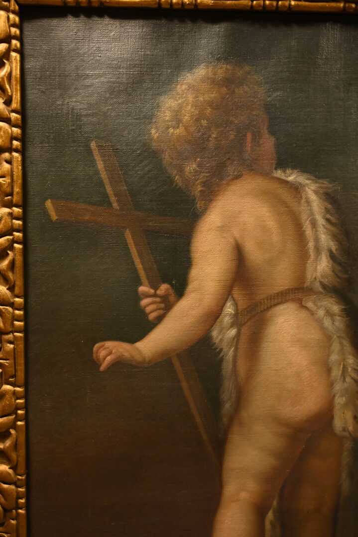 École du XIXe siècle, d’après une École du XVIe siècle. Saint Jean-Baptiste vu de dos. Huile sur toile. 76 x 56 cm.
